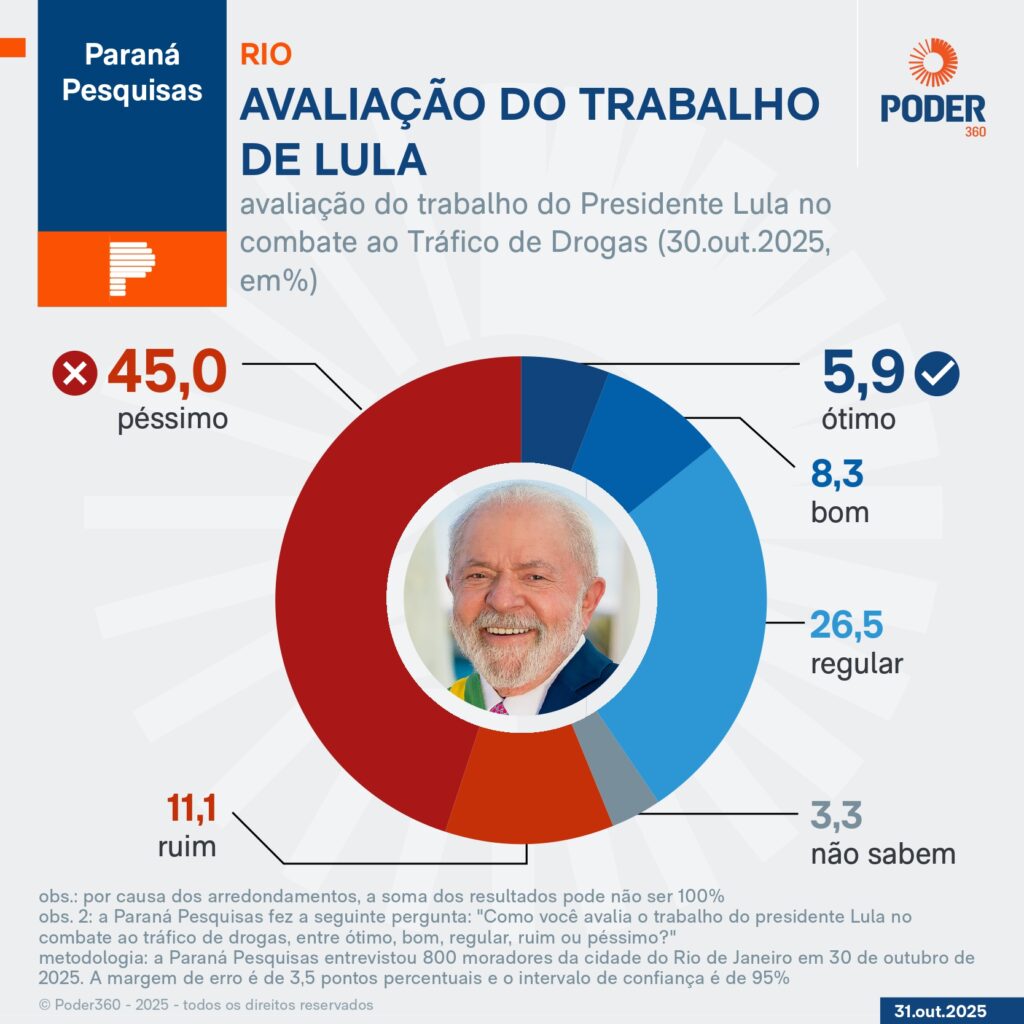 A pesquisa entrevistou 800 moradores da cidade do Rio de Janeiro em 30 de outubro de 2025. A margem de erro é de 3,5 pontos percentuais e o intervalo de confiança é de 95%.