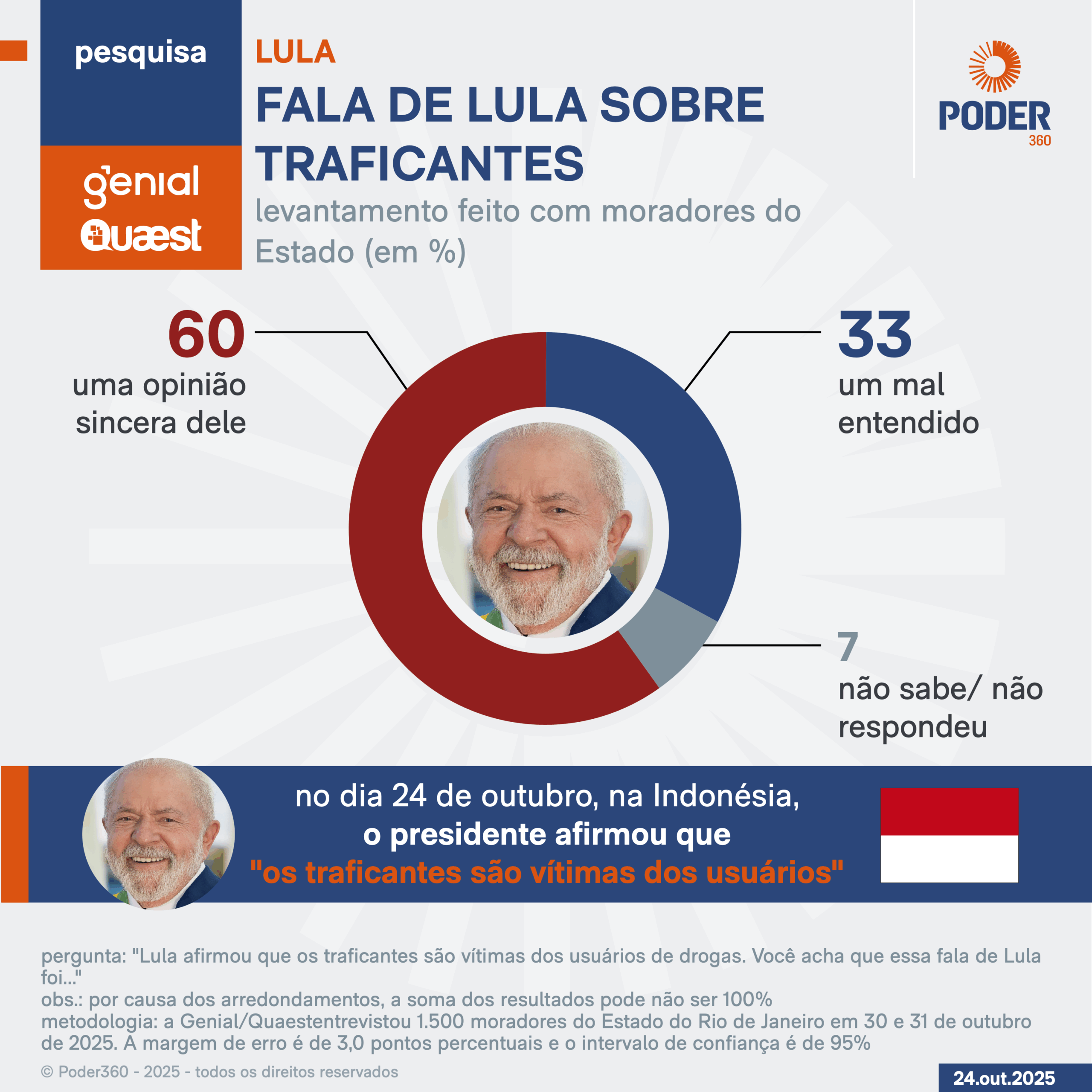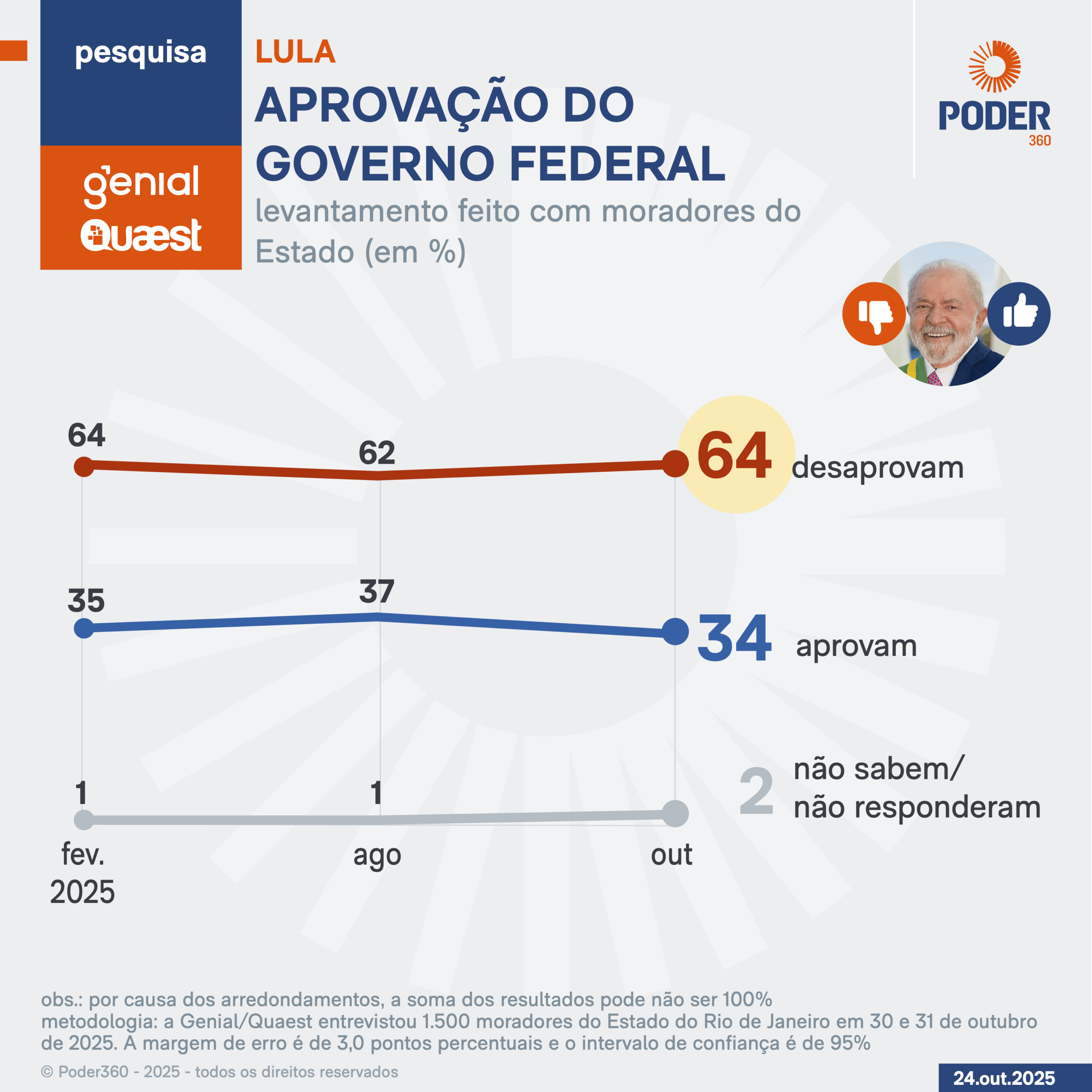 A pesquisa foi feita nos dias 30 e 31 de outubro. A Genial/Quaest entrevistou 1.500 moradores do Rio de Janeiro. A margem de erro é de 3 pontos percentuais e o intervalo de confiança é de 95%. Eis a íntegra (PDF – 13,6 MB) do levantamento divulgado neste domingo (2.nov.2025).