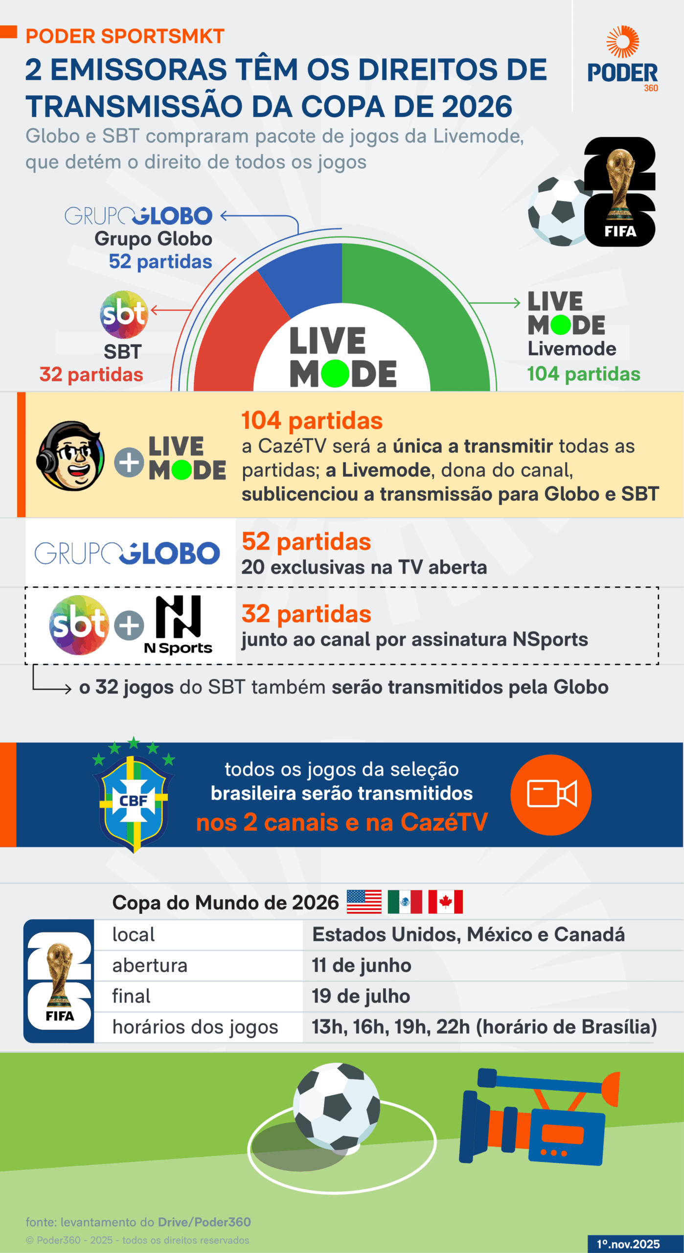 Com o anúncio, o consumidor brasileiro terá ao menos 3 opções para assistir aos jogos do torneio no próximo ano: SBT, Globo e CazéTV, que pertence à Livemode e será o único veículo a transmitir todas as 104 partidas do torneio.