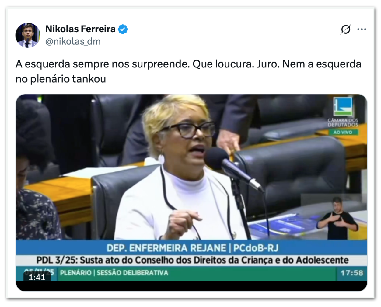 — Nikolas Ferreira (@nikolas_dm) November 5, 2025