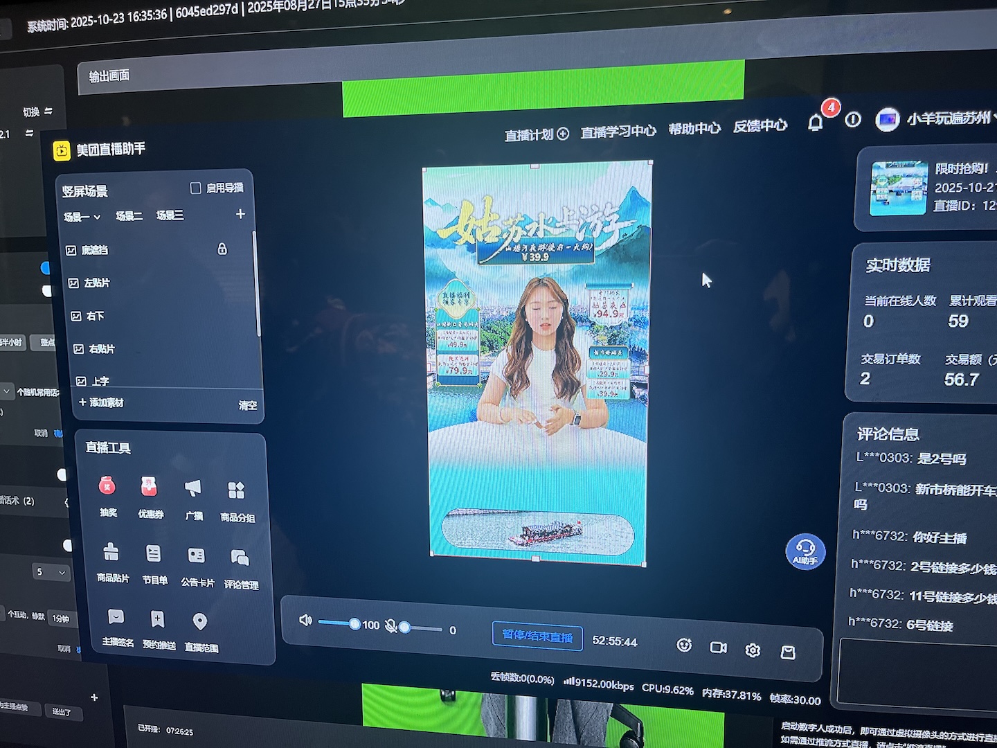 Avatar apresentado produtos em teste de transmissão