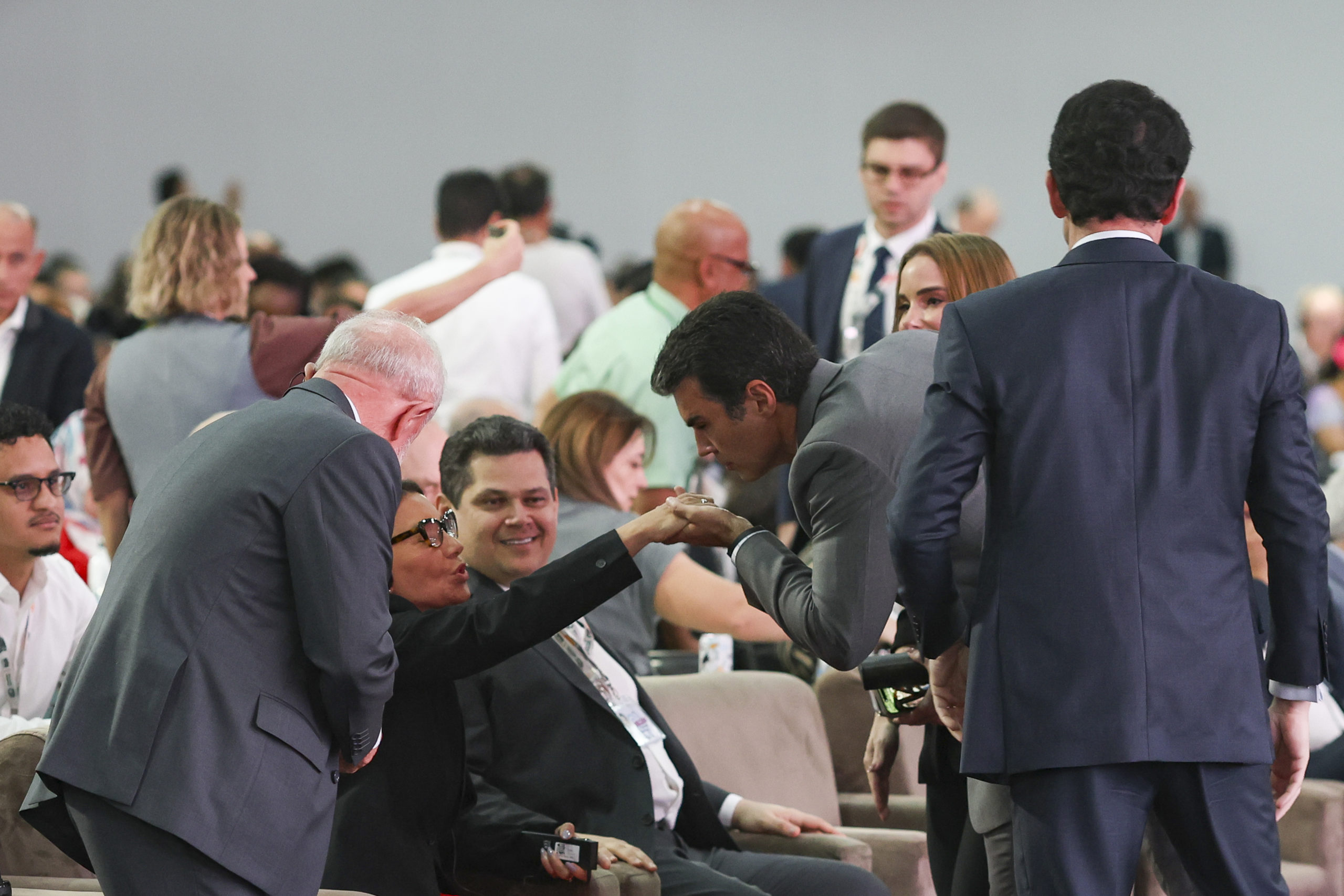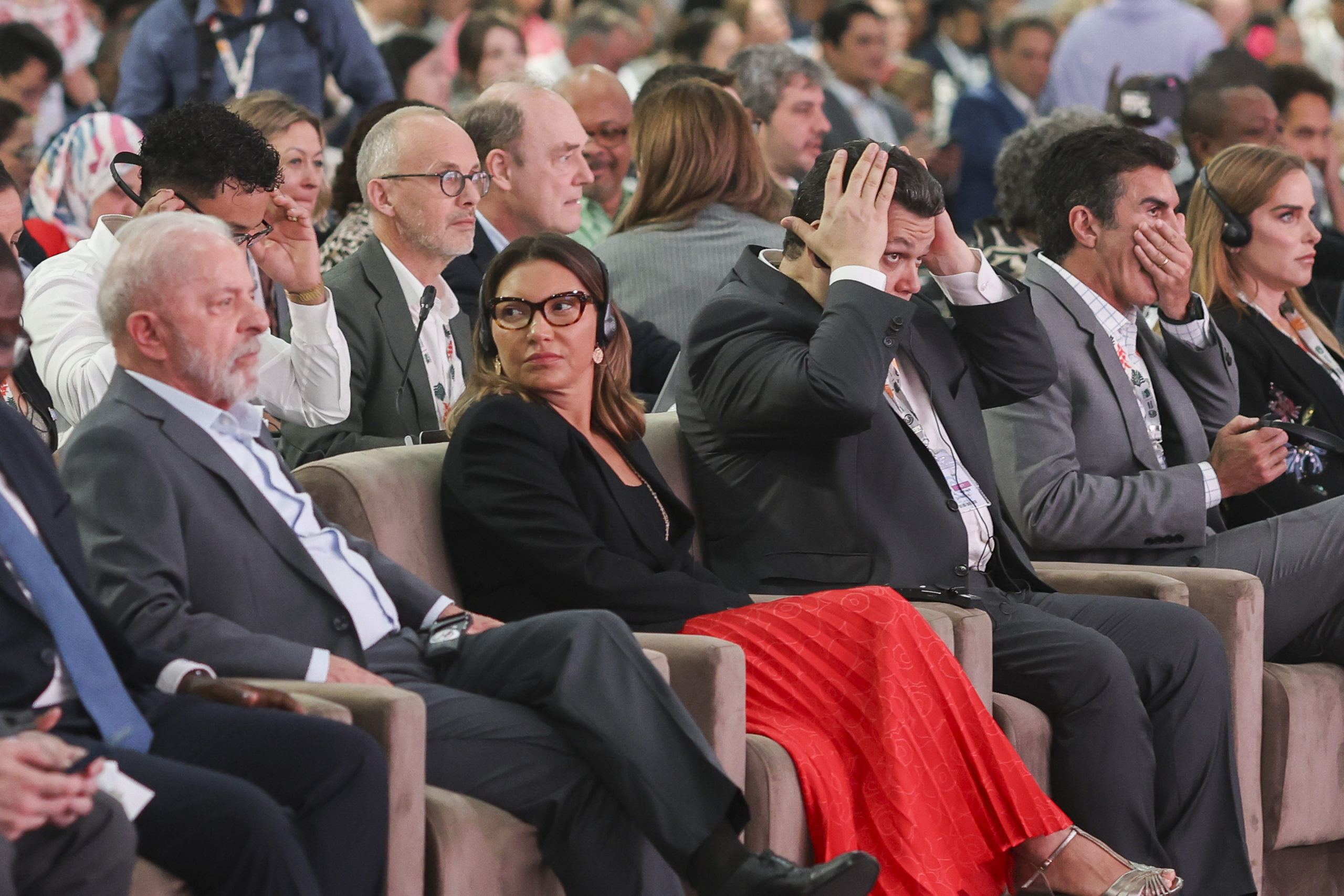 Presidente Luiz Inacio Lula da Silva ciom a primeira-dama Janja da Silva na abertura da COP30 – A Cúpula de Líderes que antecede a COP30. COP30, que acontece de 10 a 21 de novembro em Belém. É a 1ª vez que o Brasil sedia a conferência climática da ONU desde a ECO-92, realizada no Rio de Janeiro. A expectativa é que a COP30 reúna cerca de 55.000 pessoas, entre delegações oficiais, representantes da sociedade civil e imprensa internacional, segundo o governo brasileiro. | Sérgio Lima/Poder360 – 10.nov.2025