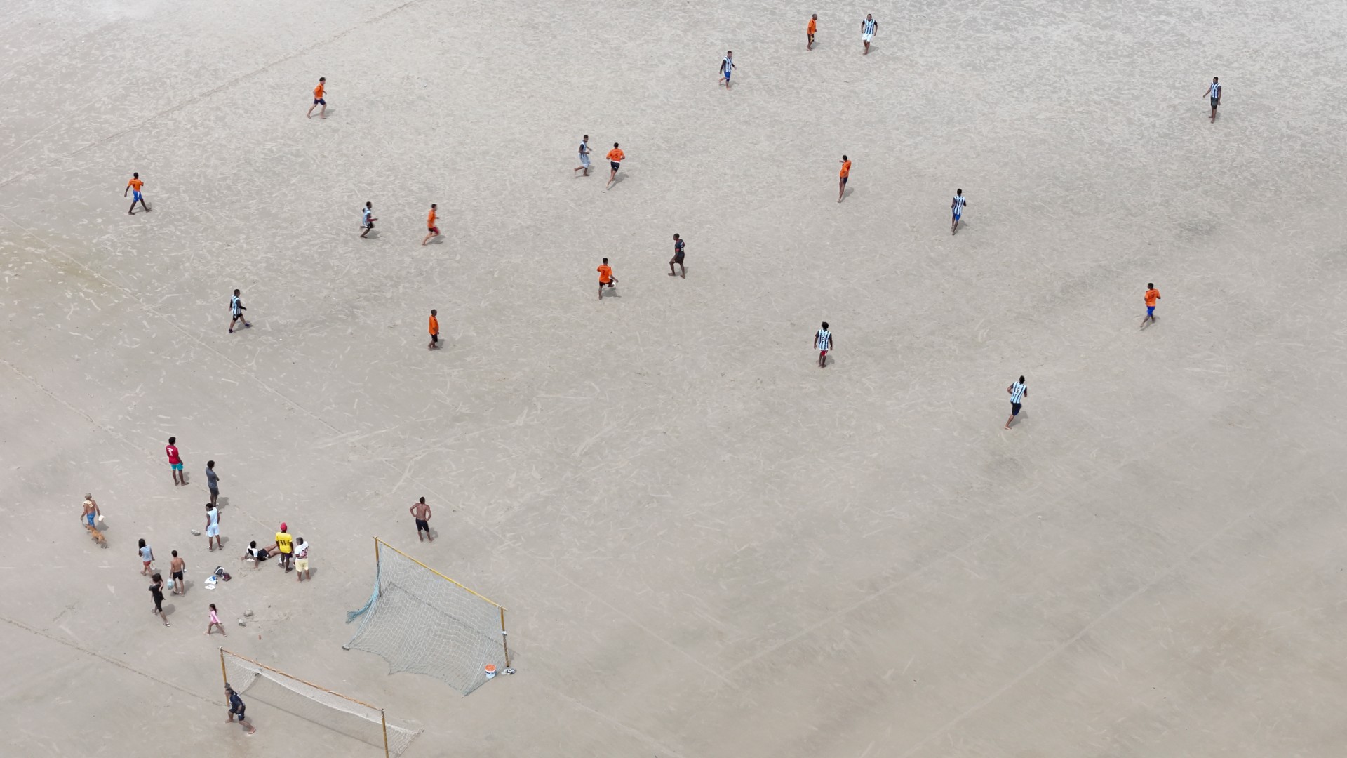 Na imagem, pessoas jogam futebol em praia de São Luís (MA)