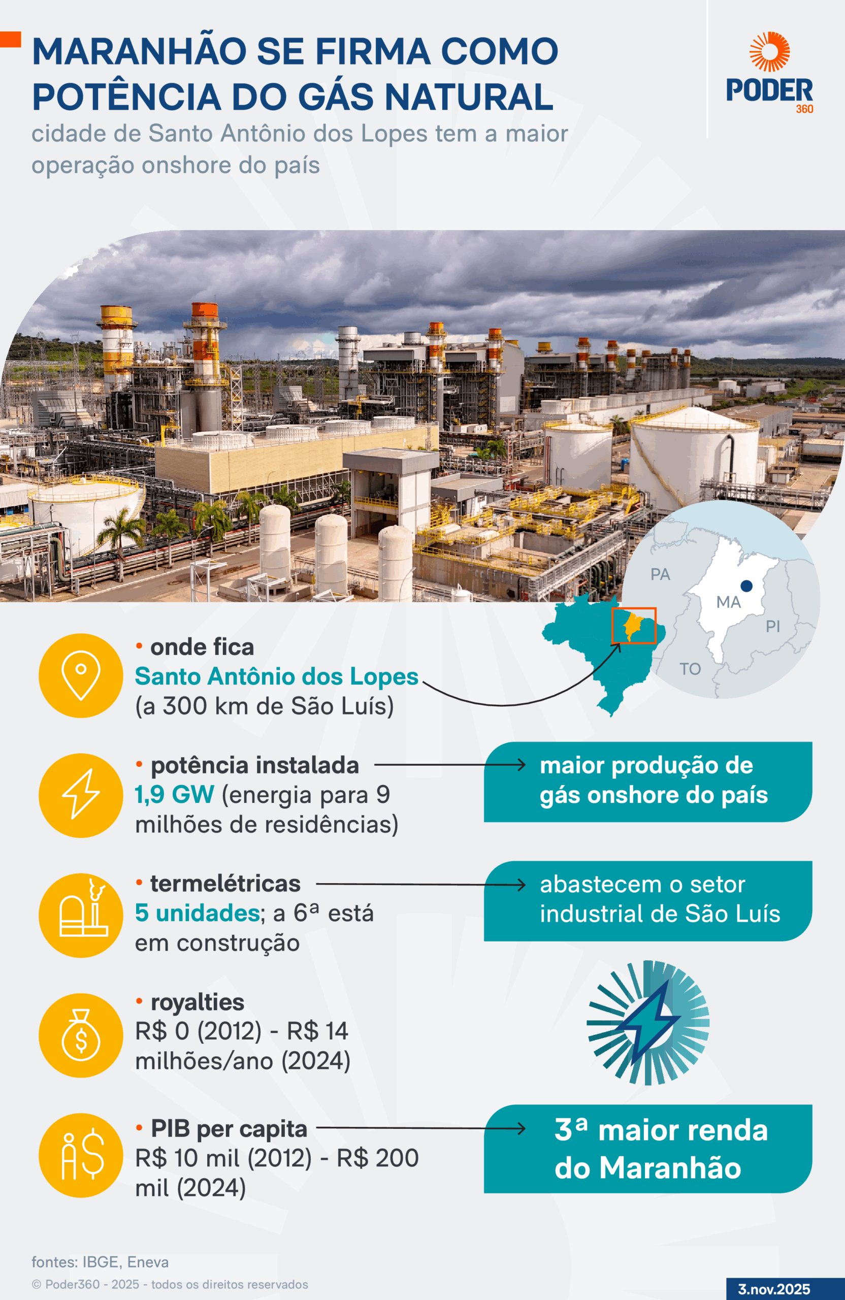 A revolução energética maranhense começou longe do litoral. Santo Antônio dos Lopes, a 300 km de São Luís, virou símbolo da transformação. O município abriga o Complexo Termelétrico de Parnaíba, operado pela Eneva, maior produtor de gás natural onshore do Brasil.