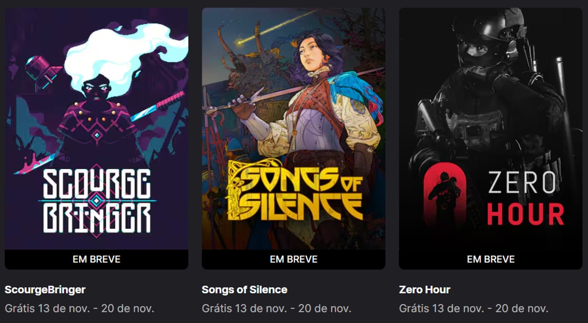 Ficou curioso para saber mais sobre os títulos gratuitos da vez? Logo abaixo você confere um trailer e uma breve descrição de ScourgeBringer, Songs of Silence e Zero Hour, que podem ser seu de forma permanente — mas por tempo limitado.
