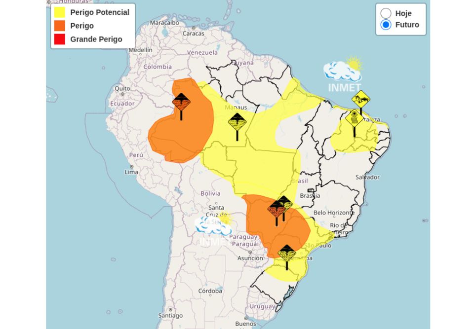 Em Rondônia, os riscos de tempestades são elevados. A combinação entre calor e alta umidade favorece a formação de nuvens carregadas também no Acre e no oeste do Amazonas. No Pará, as chuvas mais intensas devem se concentrar na divisa com o Amazonas.