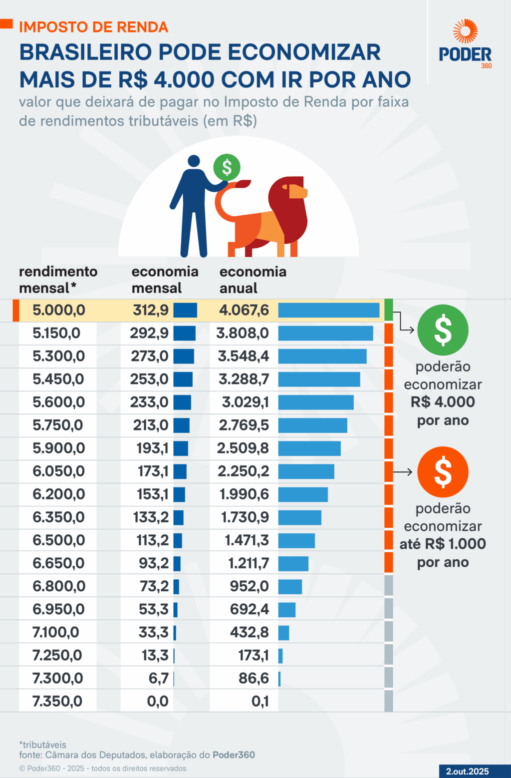 Acesse aqui a calculadora do Poder360 e saiba qual pode ser a economia com a isenção do Imposto de Renda, conforme o nível de renda.