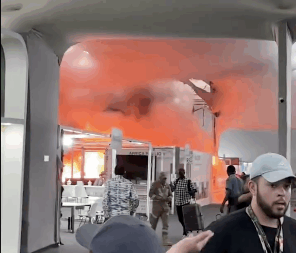 Incêndio em pavilhão da Blue Zone na COP30 | Reprodução/X @ivan