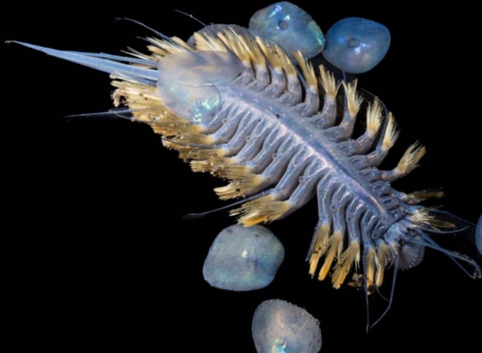 Além desta esponja marinha, os pesquisadores também encontraram novos vermes escamosos e iridescentes (imagem abaixo), novas espécies de estrelas-do-mar, novos crustáceos, incluindo isópodes e anfípodes, e gastrópodes e bivalves raros.