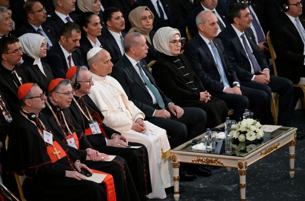 O Papa foi recebido em Ancara, capital do país, às 12h20 (6h20 no horário de Brasília), onde se reuniu com o presidente turco, Recep Tayyip Erdogan (Partido da Justiça e Desenvolvimento, direita), e discursou para o corpo diplomático. A viagem do Papa se dá em um momento de negociações para o fim da guerra na Ucrânia e tensões no Oriente Médio. Em outubro, o pontífice defendeu “uma paz justa e duradoura na Faixa de Gaza”.