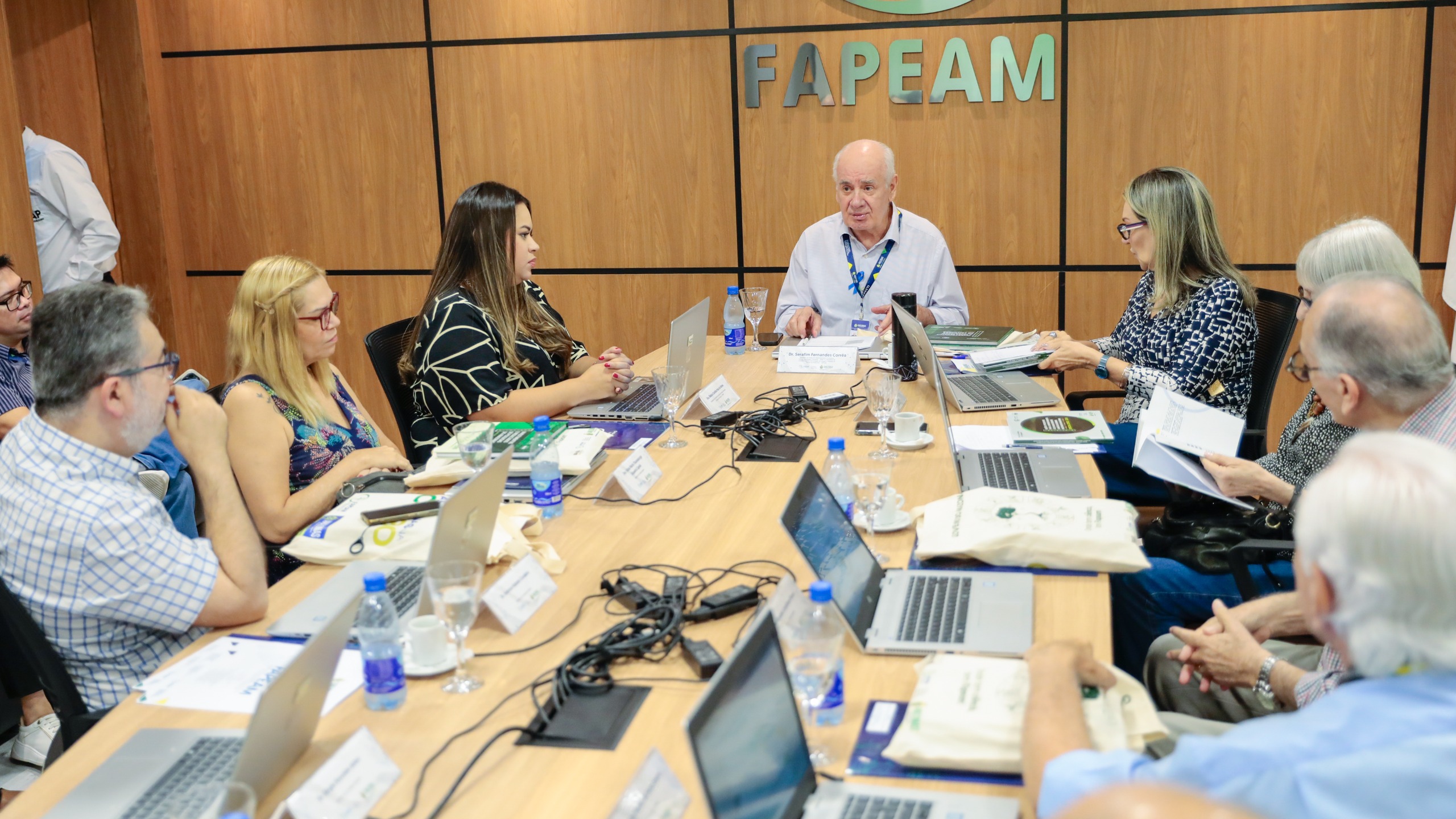 A reunião conduzida pelo presidente do Conselho Superior da Fapeam e titular da Secretaria de Estado de Desenvolvimento Econômico, Ciência, Tecnologia e Inovação (Sedecti), Serafim Corrêa, contou com a presença dos membros do Conselho Superior: Vânia Maria Thaumaturgo Siqueira Capela, da Associação Polo Digital de Manaus (APDM), Gisélle Vilela Lins Maranhão (de forma virtual), da UniNilton Lins, Léo Fernando Castelhano Bruno, da Centro de Bionegócios da Amazônia (CBA), Sérgio Duvoisin Júnior, da Universidade do Estado do Amazonas (UEA), Marcus Vinitius de Farias Guerra, da Fundação de Medicina Tropical Doutor Heitor Vieira Dourado (FMT-HVD), Everton Rabelo Cordeiro, da Embrapa Amazônia Ocidental e Beatriz Ronchi Telles, do Instituto Nacional de Pesquisas da Amazônia (Inpa).