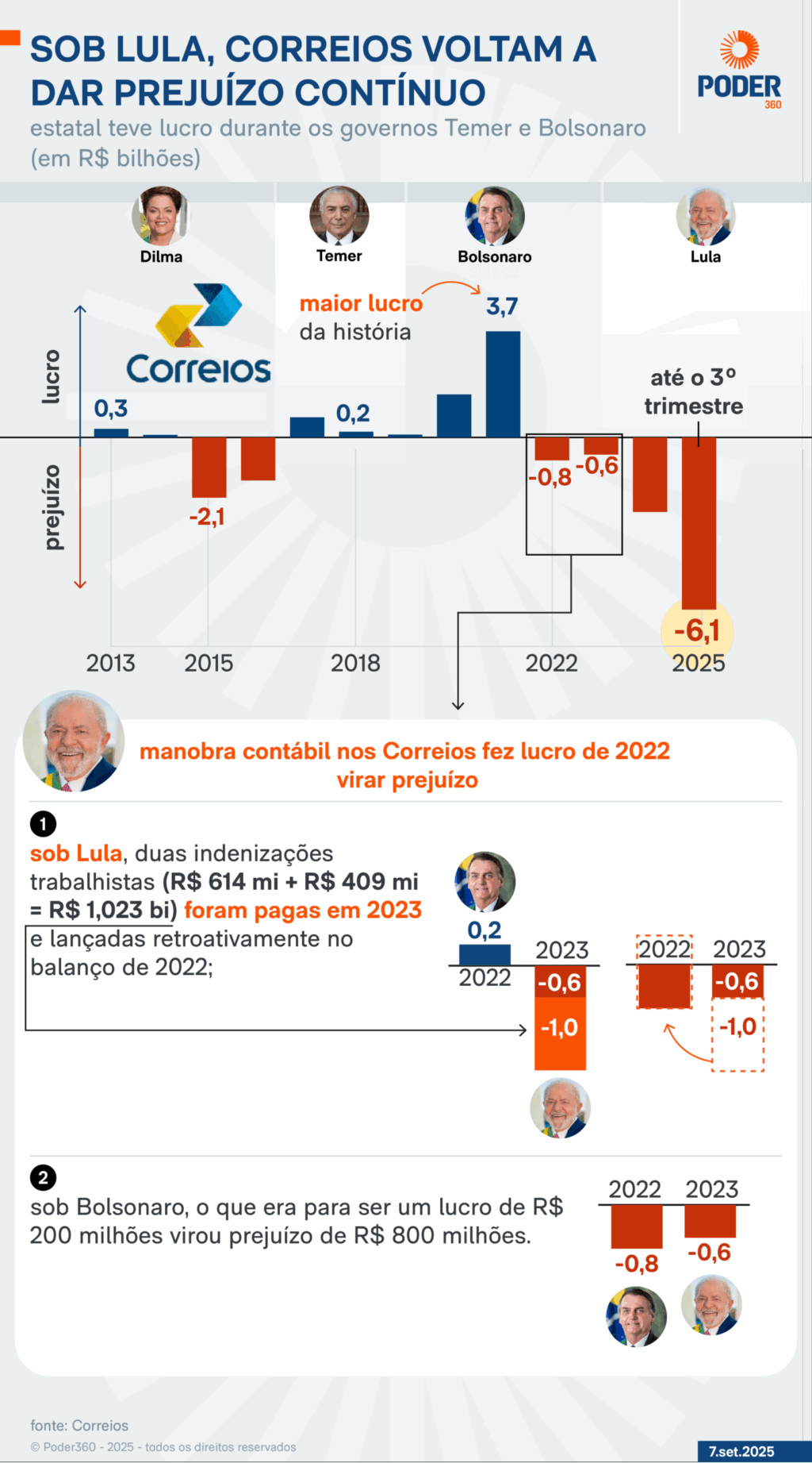 A expectativa é de um deficit primário de R$ 5,8 bilhões em 2025. No relatório bimestral anterior, a projeção era de saldo negativo de R$ 2,4 bilhões. Os 2 números, contudo, sintetizam a situação financeira da estatal.