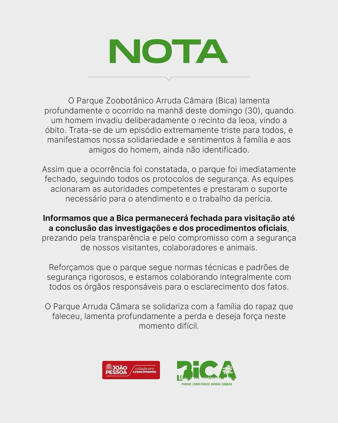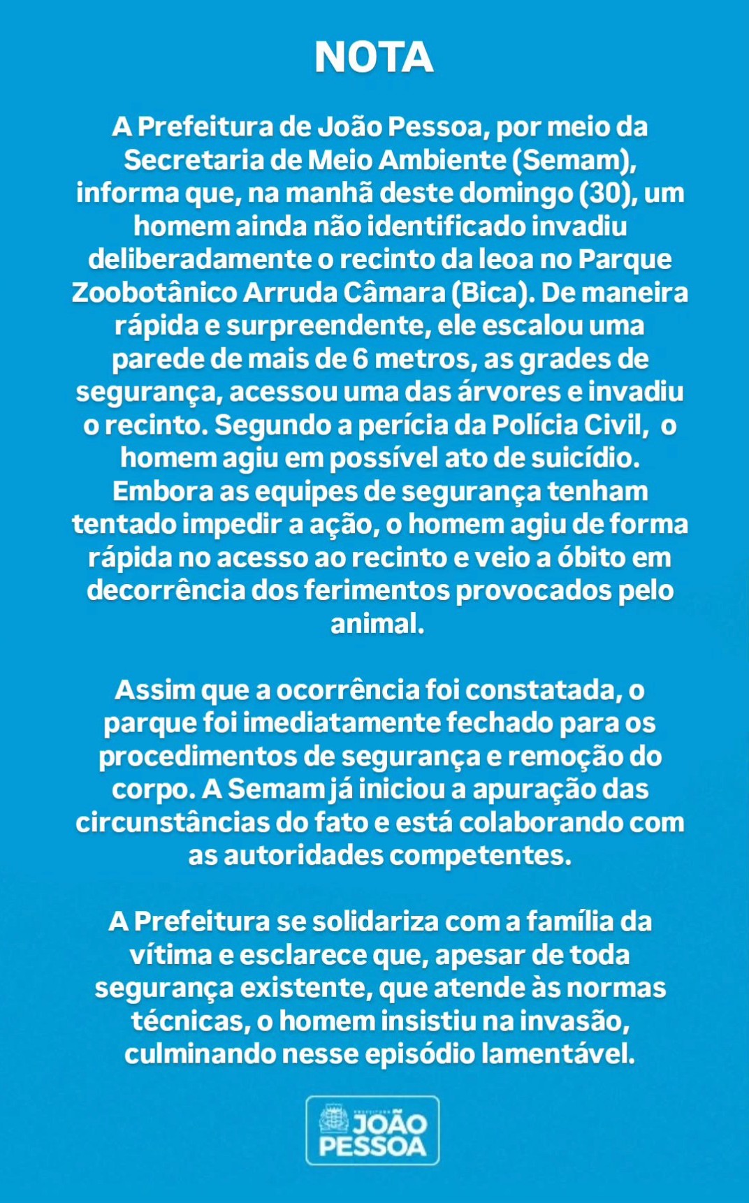 A Prefeitura de João Pessoa também se manifestou. Disse que: