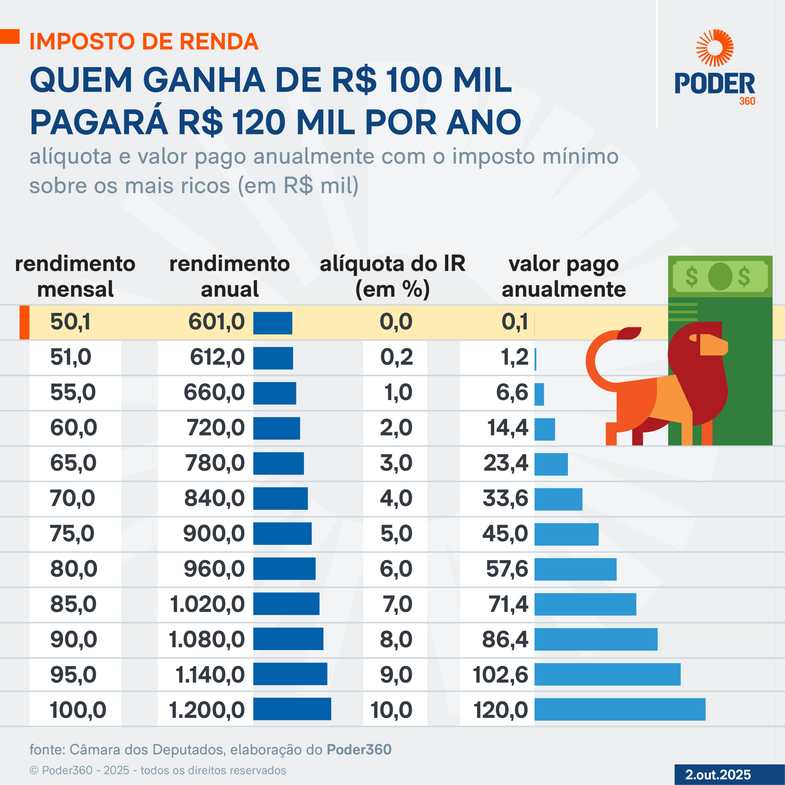 A proposta foi aprovada por unanimidade pela Câmara em 1º de outubro, depois pelo Senado em 5 de novembro e sancionada em 26 de novembro. Passa a valer em 2026. Era uma promessa de Lula em 2022 e será amplamente usada na campanha pela reeleição em 2026. O governo lançou a campanha “pobres X ricos” para defender o projeto.