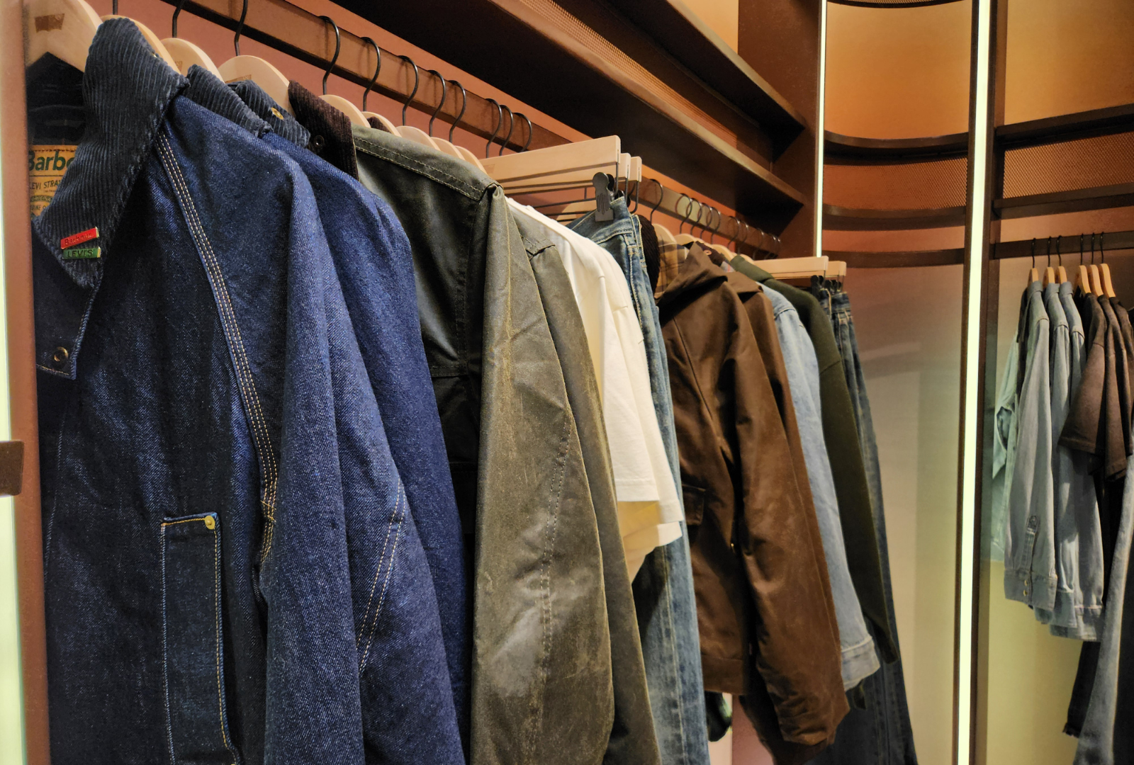 Na imagem, as jaquetas Barbour na loja da Levi’s no Shops Jardins, onde são vendidas com exclusividade