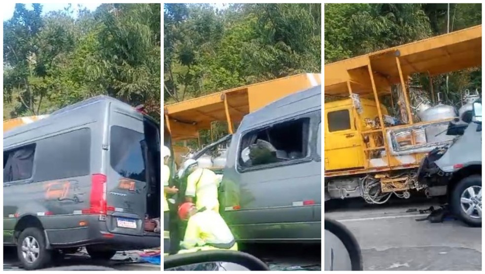 A PRF informou que houve colisão traseira entre a van da dupla, uma carreta e um automóvel, totalizando três veículos envolvidos.