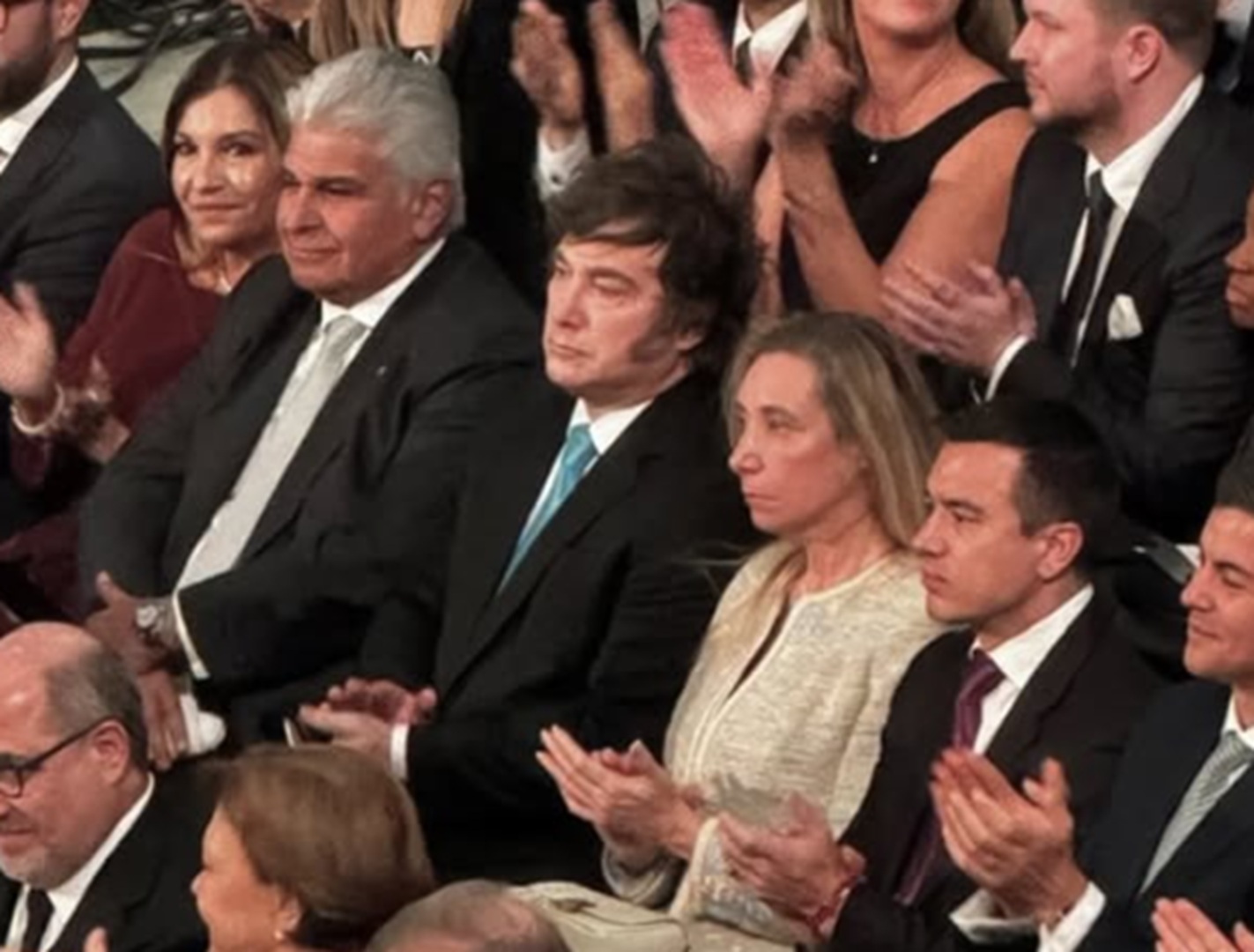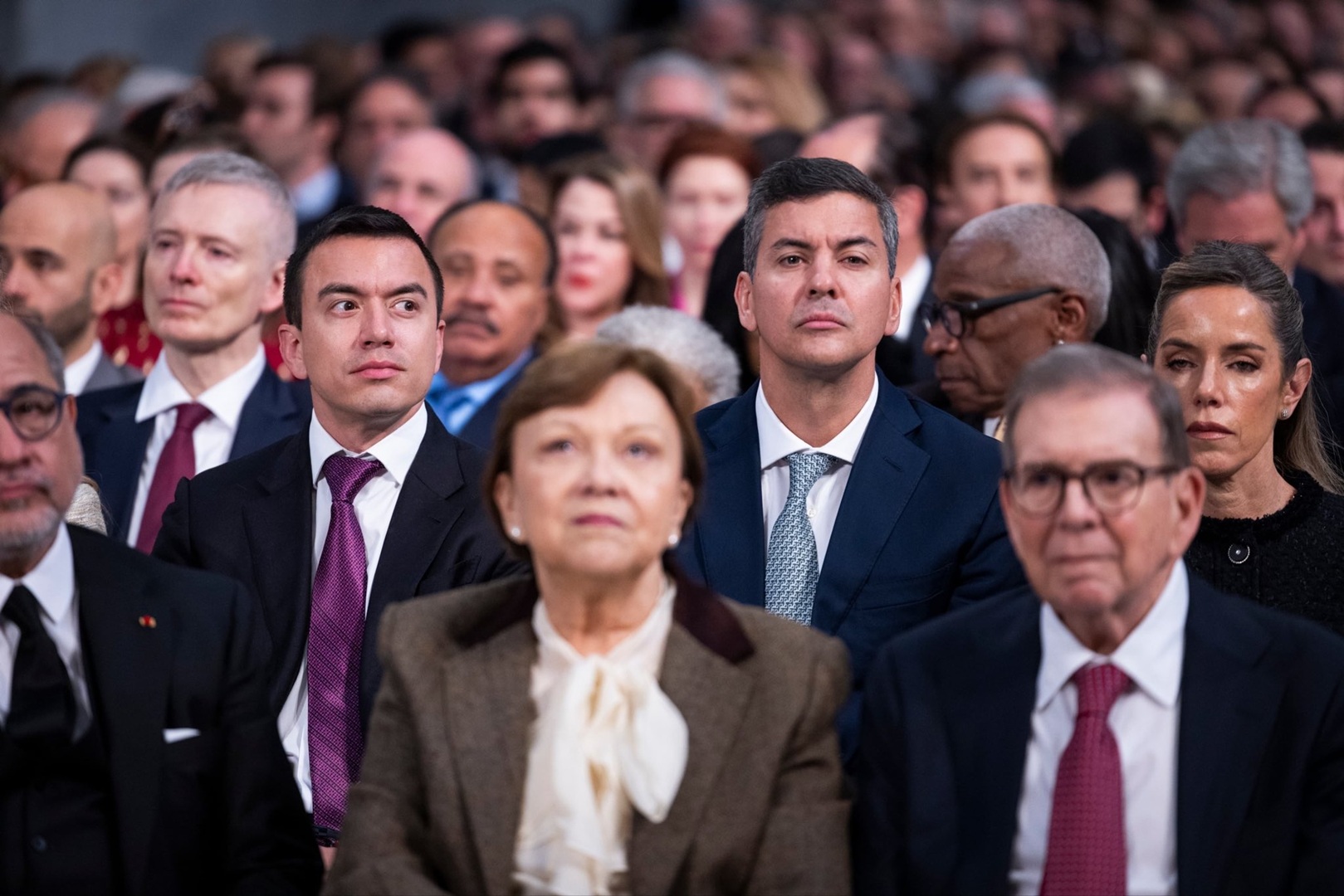 Líderes da América Latina, como os presidentes Javier Milei (La Libertad Avanza, direita), da Argentina; Daniel Noboa (Ação Democrática Nacional, direita), do Equador; José Raúl Mulino (Realizando Metas, direita), do Panamá; e Santiago Peña (Partido Colorado, direita), do Paraguai, estavam na plateia. O opositor venezuelano Edmundo González Urrutia, candidato às eleições presidenciais de 2024, que vive exilado na Espanha, também participou da cerimônia.