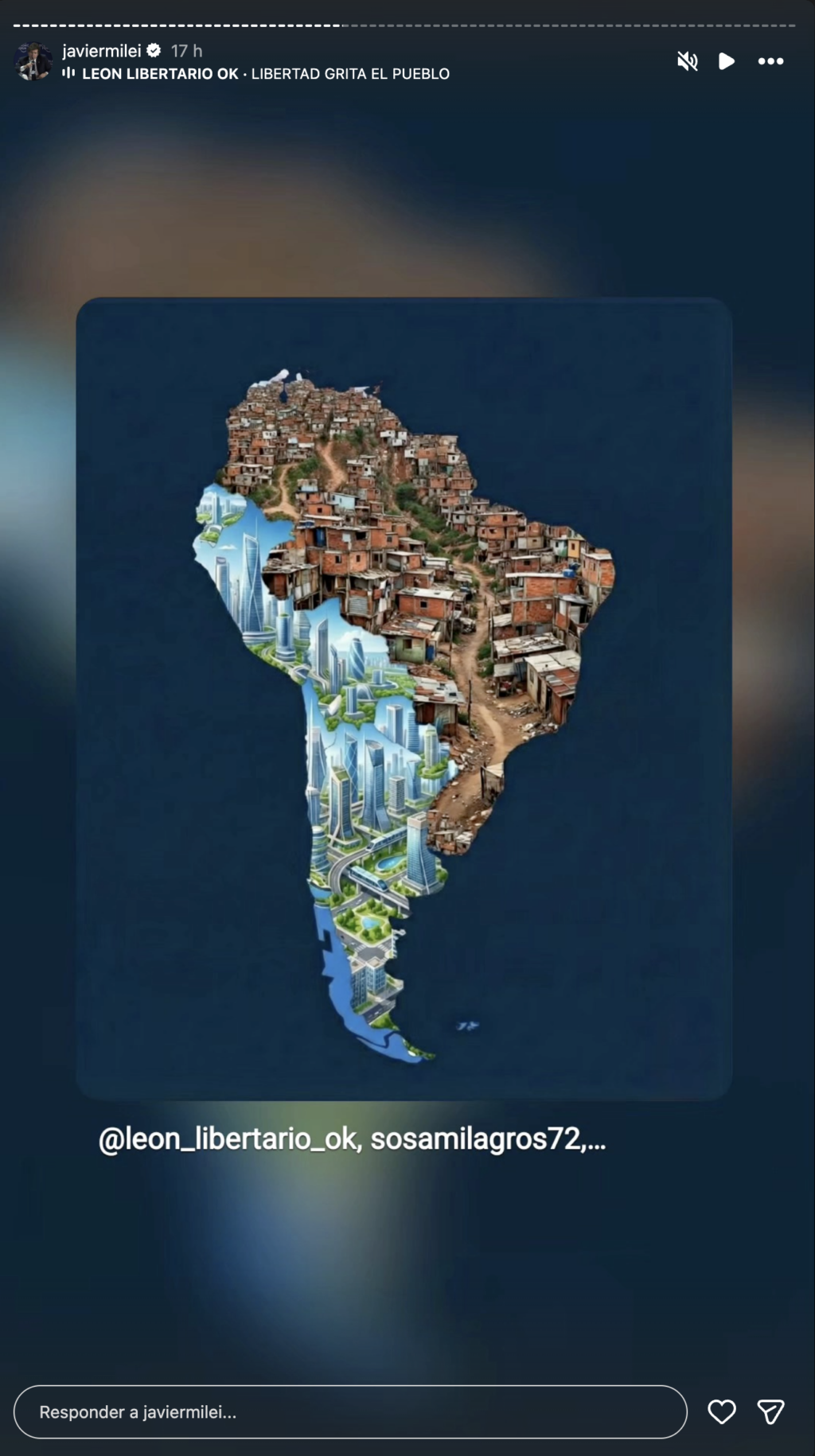 A publicação se deu como homenagem à vitória de José Antonio Kast (Partido Republicano, direita) nas eleições presidenciais chilenas. Na imagem, o mapa sul-americano é dividido entre uma grande favela representada por Brasil, Uruguai, Venezuela, Guiana, Suriname, Guiana Francesa e Colômbia. Já o outro lado, composto por Argentina, Chile, Paraguai, Equador, Bolívia e Peru, são retratados como áreas desenvolvidas.
