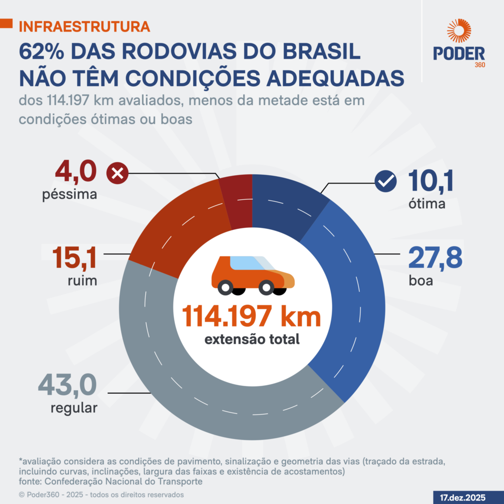 - Qualidade das rodovias melhora em 2025, mas 62% seguem problemáticas
