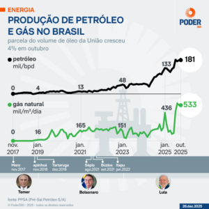 O saldo acumula uma alta de 7,9% de janeiro a novembro. Em 12 meses, cresceu 9,5%. A autoridade monetária aumentou de 8,8% para 9,4% a estimativa para a expansão do estoque de crédito do Brasil para 2025. Para 2026, a projeção subiu de 8,0% para 8,6%.