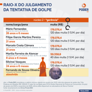 O STF (Supremo Tribunal Federal) condenou Vasques por envolvimento na tentativa de golpe de Estado para manter o ex-presidente Jair Bolsonaro (PL) no Planalto depois da derrota nas eleições de 2022. A 1ª Turma da Corte fixou a pena em 24 anos e 6 meses de prisão, além do pagamento de 120 dias-multa. O julgamento, realizado em 16 de dezembro, analisou o chamado núcleo 2 da articulação golpista.