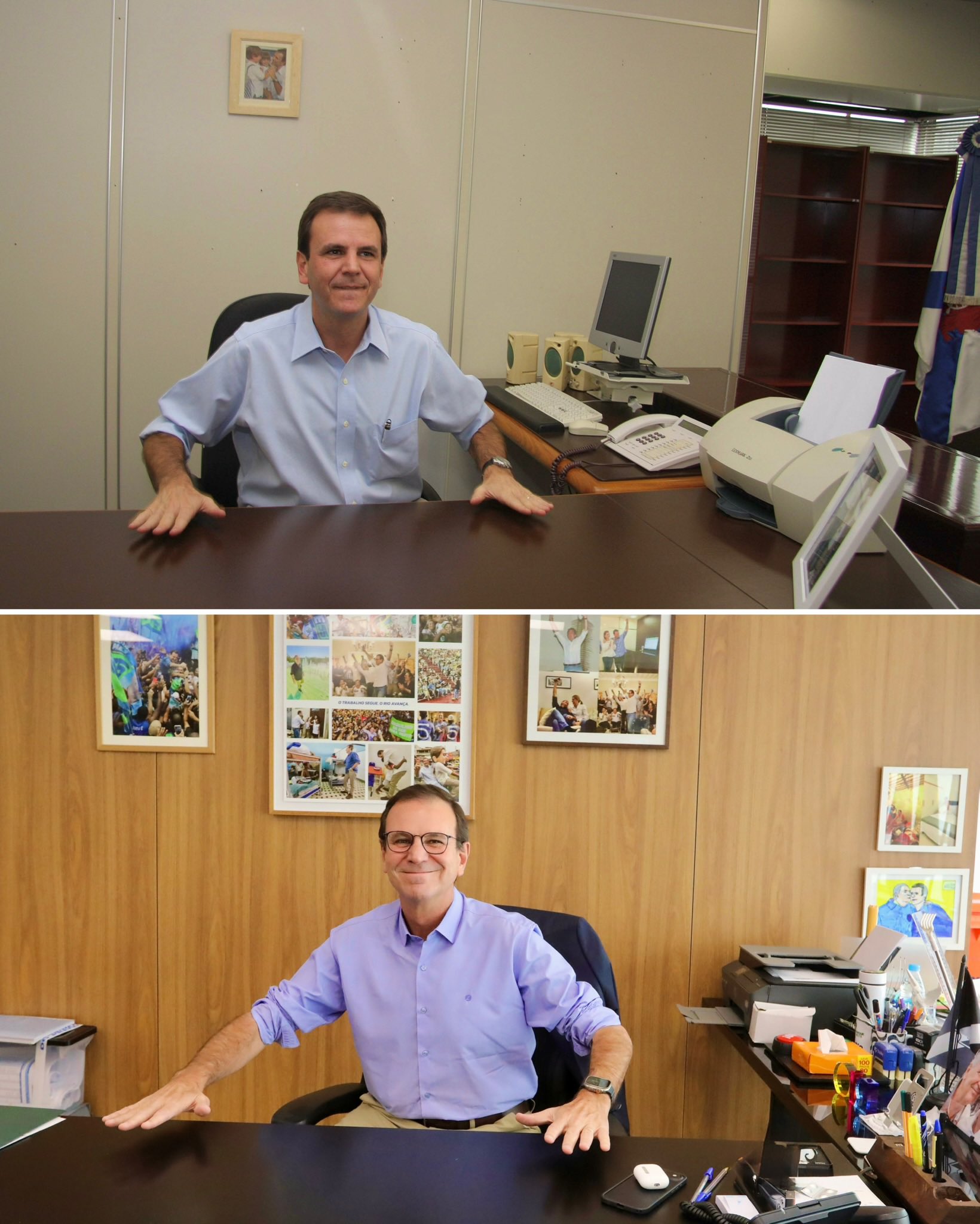 O prefeito do Rio, Eduardo Paes (PSD), publicou em seu perfil no X nesta 5ª feira (1º.jan.2026) fotos de quando estava no cargo em 1º de janeiro de 2009 e fotos de agora, ocupando o mesmo posto.