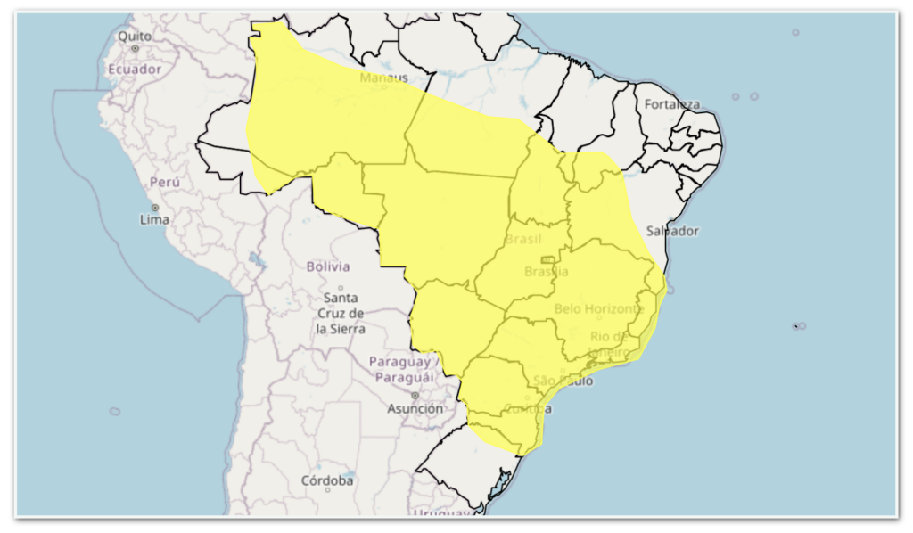 Unidades Federativas incluídas no alerta amarelo (perigo potencial):