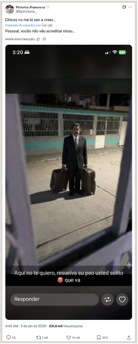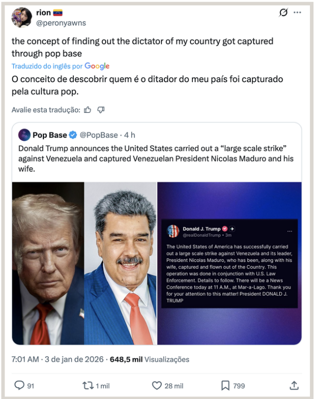 O ataque dos Estados Unidos à Venezuela, realizado neste sábado (3.jan.2026), virou meme nas redes sociais. Entre as piadas, imagens do presidente venezuelano, Nicolás Maduro (PSUV, esquerda), e comparações com outros países latinos.