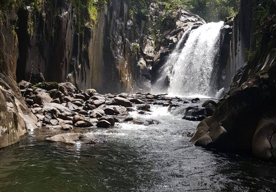 Contudo, o ponto mais bonito e visitado nela fica acima dessa queda principal, onde há uma piscina natural de borda infinita onde é possível tomar banho e ter uma boa vista da natureza nas alturas.