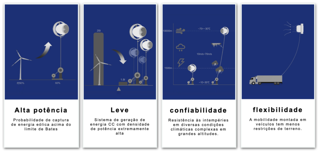 Segundo a empresa, o sistema é preenchido com hélio para flutuar, aproveitar a energia eólica e transmiti-la para o solo por meio de um cabo –há uma estrutura que fica em solo. Cada unidade do equipamento é capaz de gerar 3 MW (megawatt). Em entrevista ao site Global Times, da China, o CEO da empresa, Dun Tianrui, disse que a energia gerada em uma hora será capaz de recarregar cerca de 30 carros elétricos de 0% a 100%.