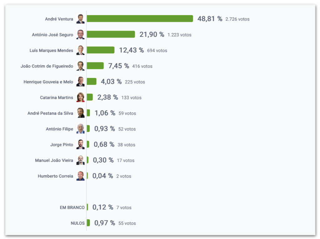 Até a última semana, segundo a principal pesquisa, o 2º turno poderia ter Seguro, Ventura ou Cotrim. A campanha do candidato do PS, com apelos ao voto útil para evitar um 2º turno dominado pela direita, deu resultado e o colocou bem à frente do líder do Chega.