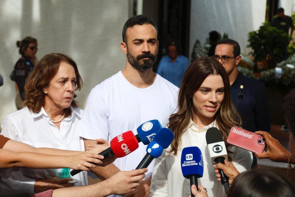 Júlia Jungmann, filha do ex-ministro Raul Jungmann, ao lado de seu irmão, Bruno, e de sua mãe, Patrícia