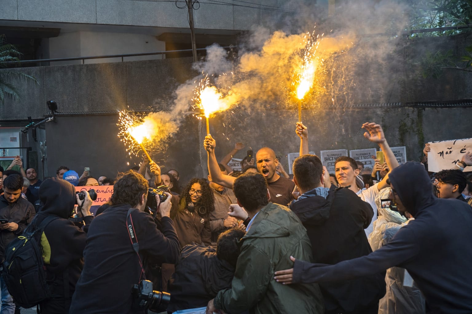 Início da manifestação em frente ao Banco Master