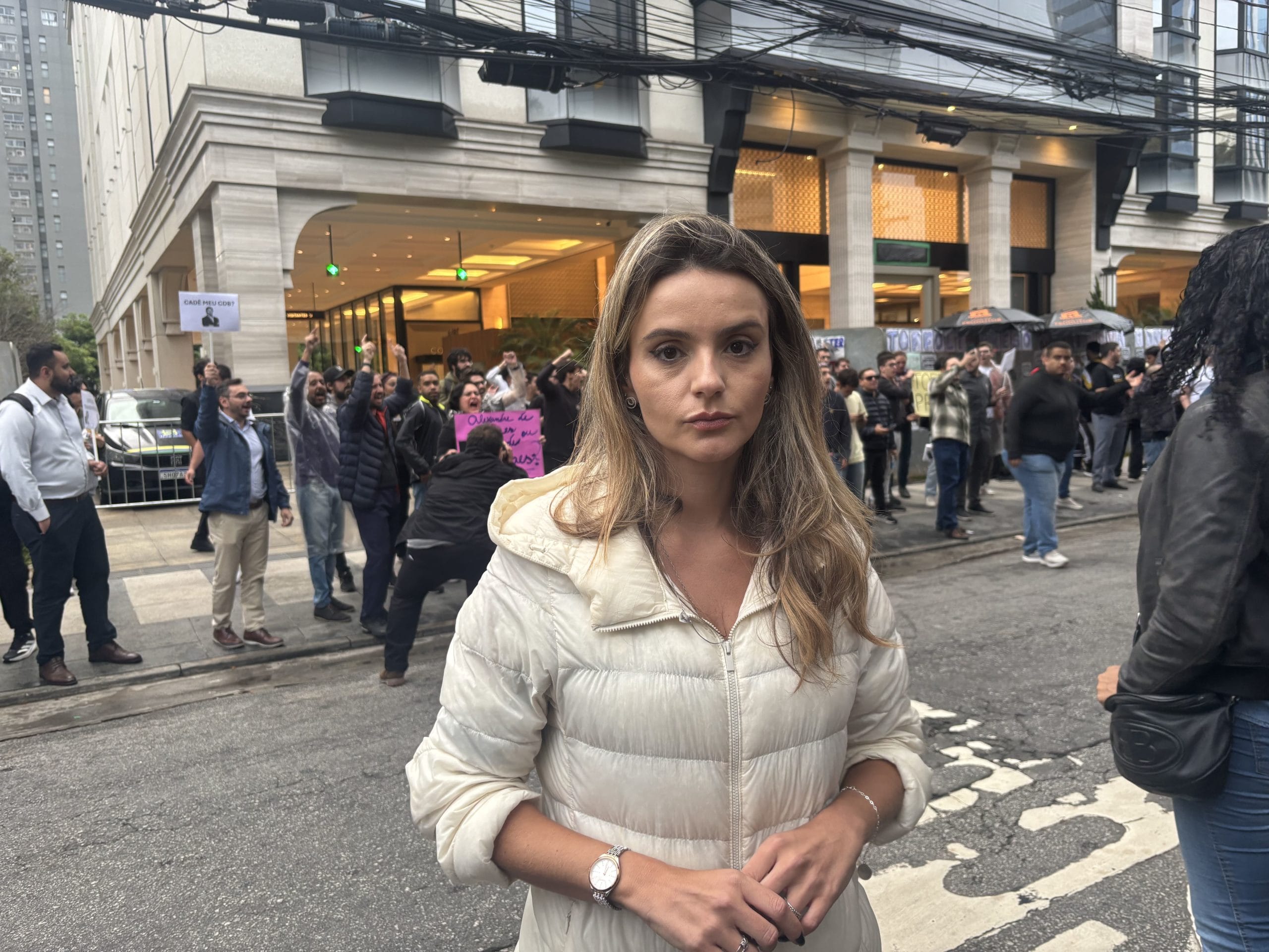 Amanda Vettorazzo em frente à manifestação contra o Banco Master – Foto: Victor Boscato/Poder360