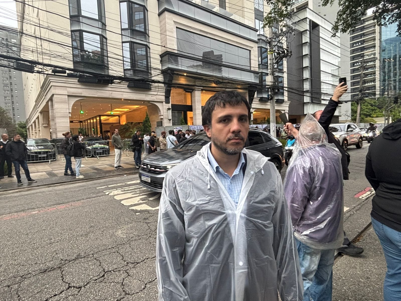 Renan Santos em frente à manifestação contra o Banco Master – Foto: Victor Boscato/Poder360