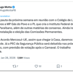 Sobre o acordo entre Mercosul e União Europeia, Hugo Mota afirmou que, assim que for enviada pelo governo federal à Câmara dos Deputados, a proposta será analisada e votada com celeridade.