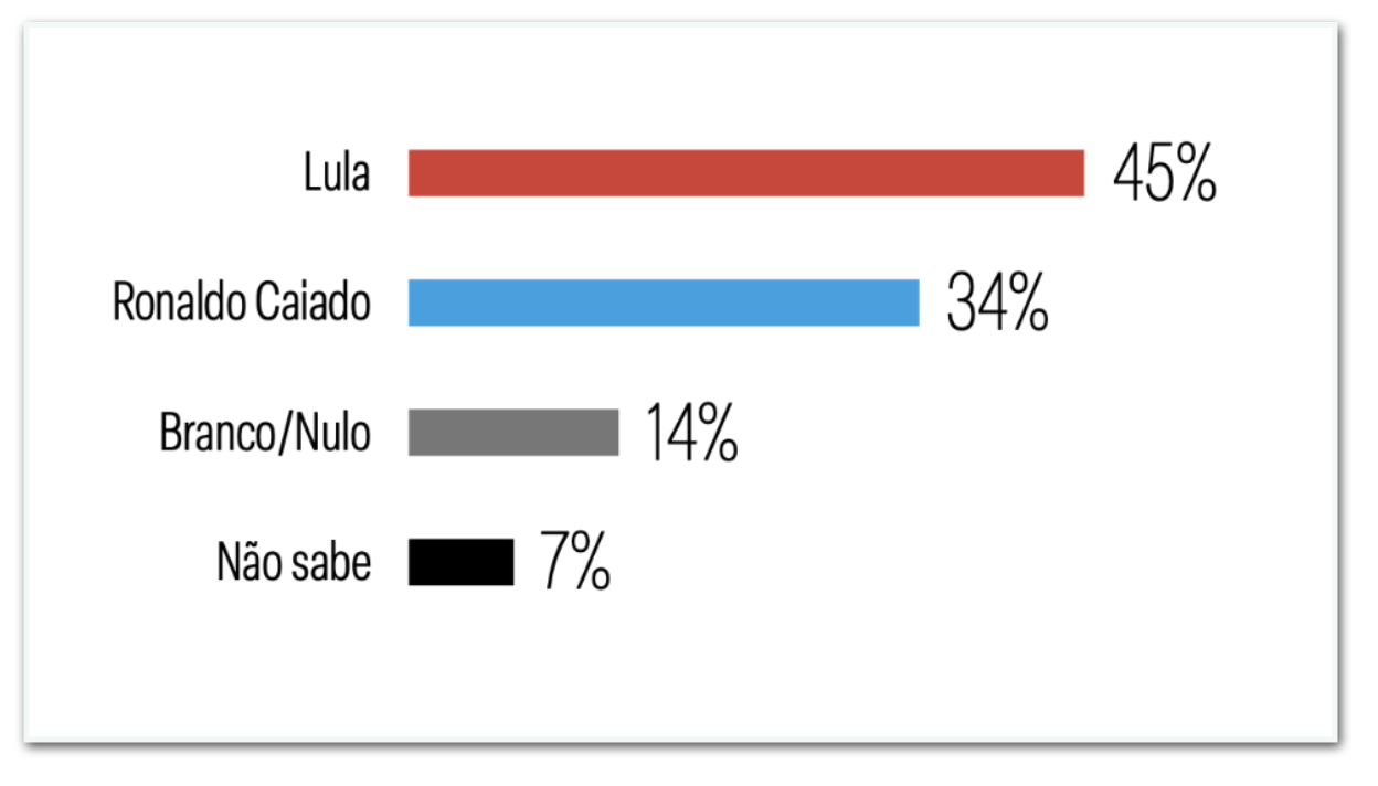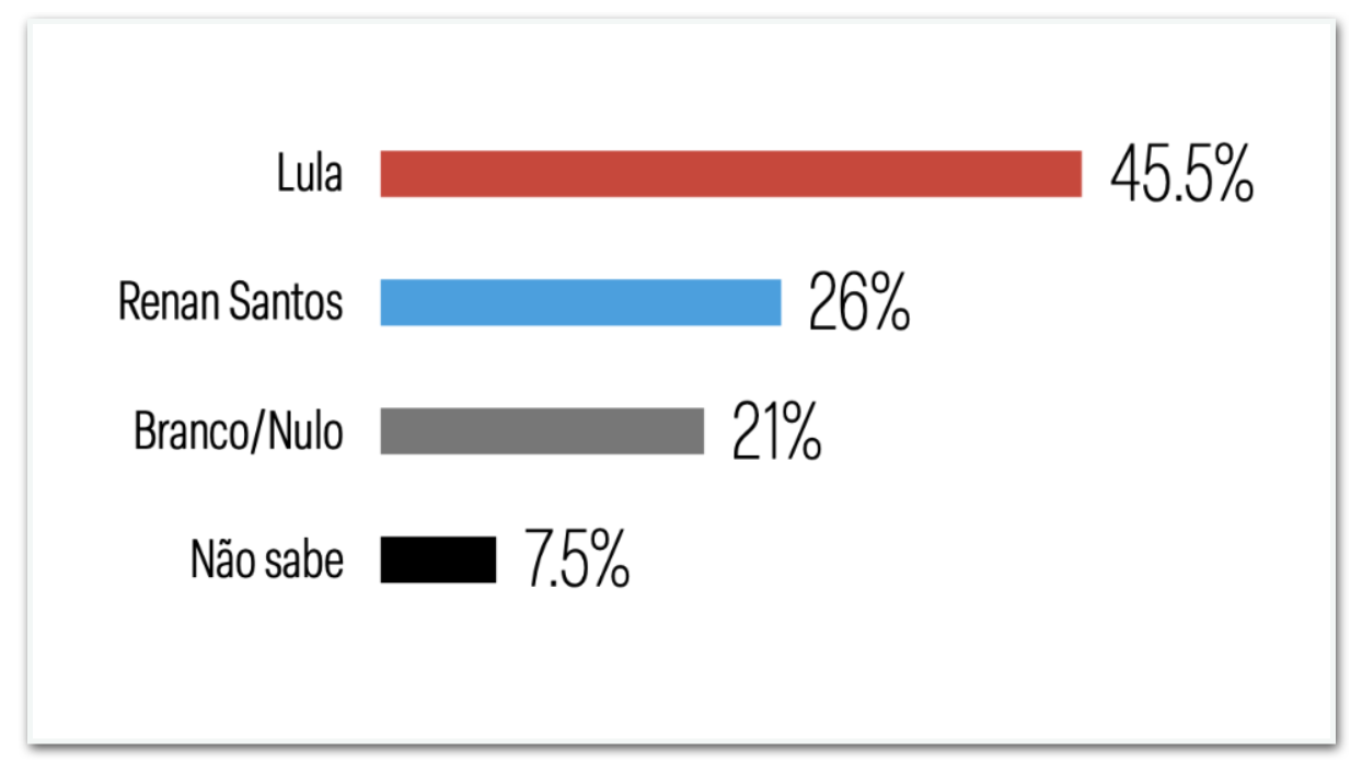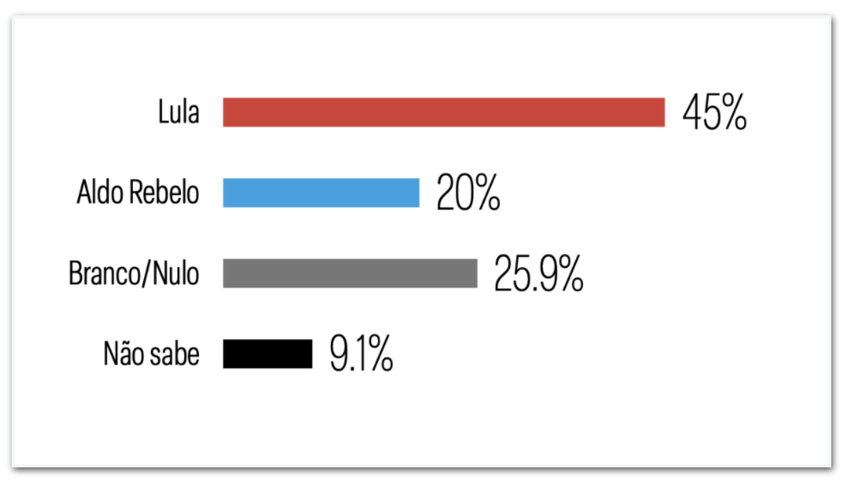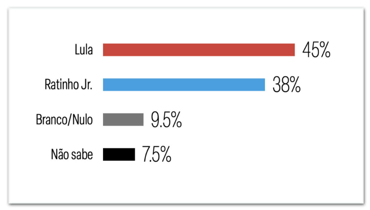 O levantamento Meio/Ideia também questionou os eleitores sobre cenários de 2º turno. Se as eleições fossem hoje, Lula seria reeleito se concorresse contra qualquer 1 dos candidatos do PSD ou contra Renan Santos (Missão) ou Aldo Rebelo (Democracia Cristã).