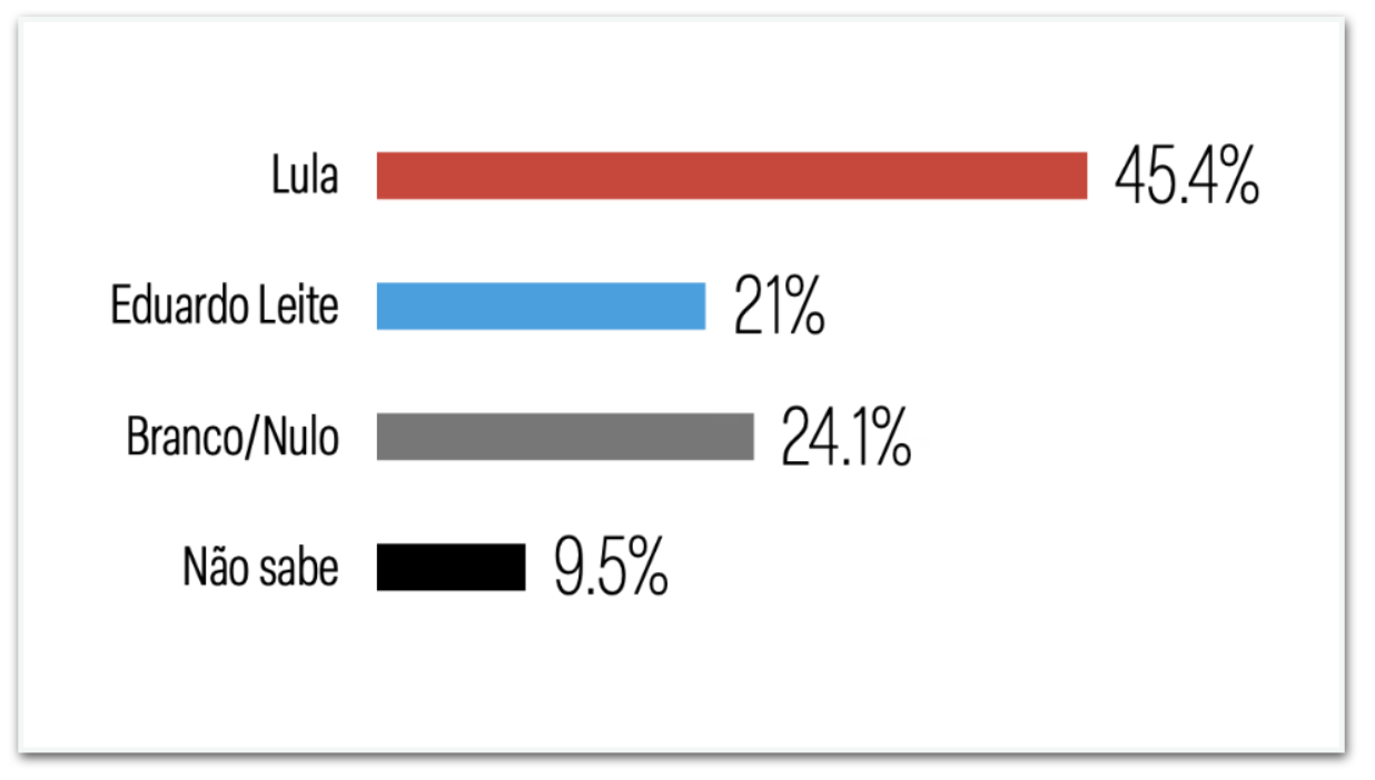 - se o adversário fosse o senador Flávio Bolsonaro (PL-RJ) e o escolhido pelo PSD para concorrer ao cargo fosse o governador do Rio Grande do Sul, Eduardo Leite (PSD);