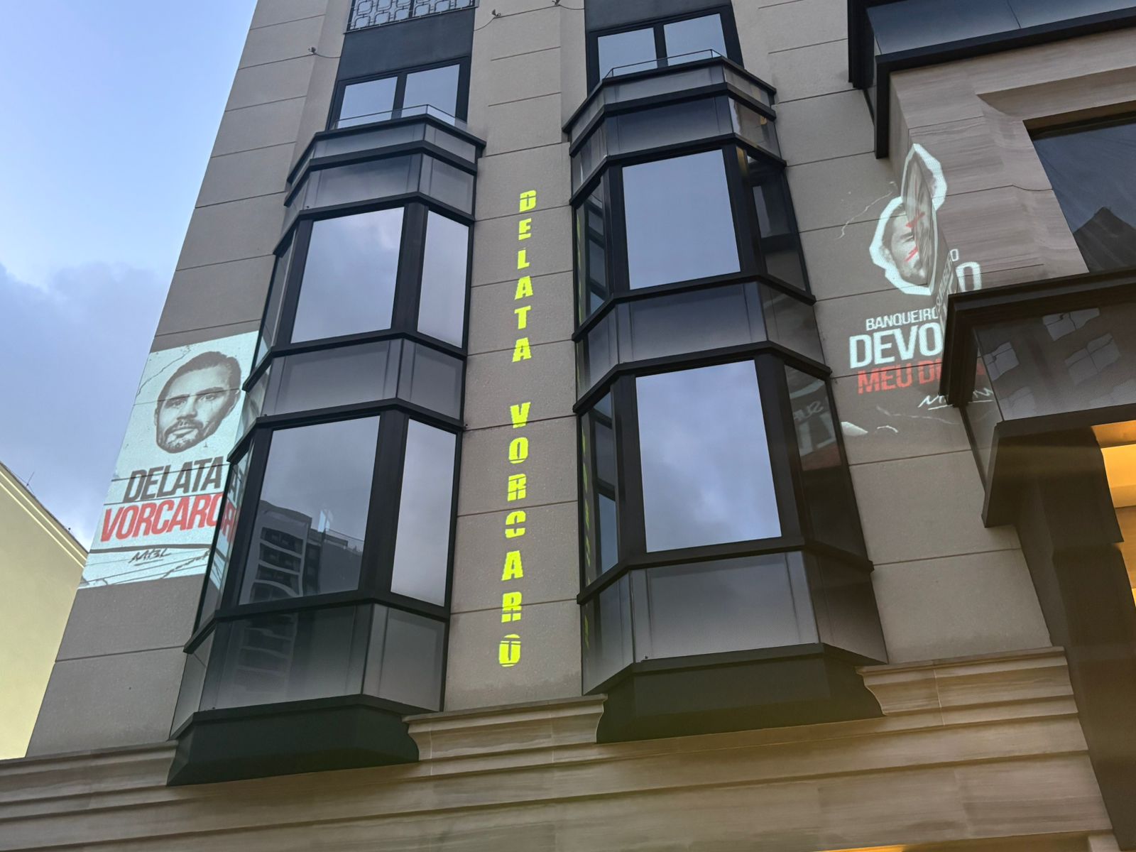 Sede do Banco Master com projetor pedindo para Vocaro “delatar”