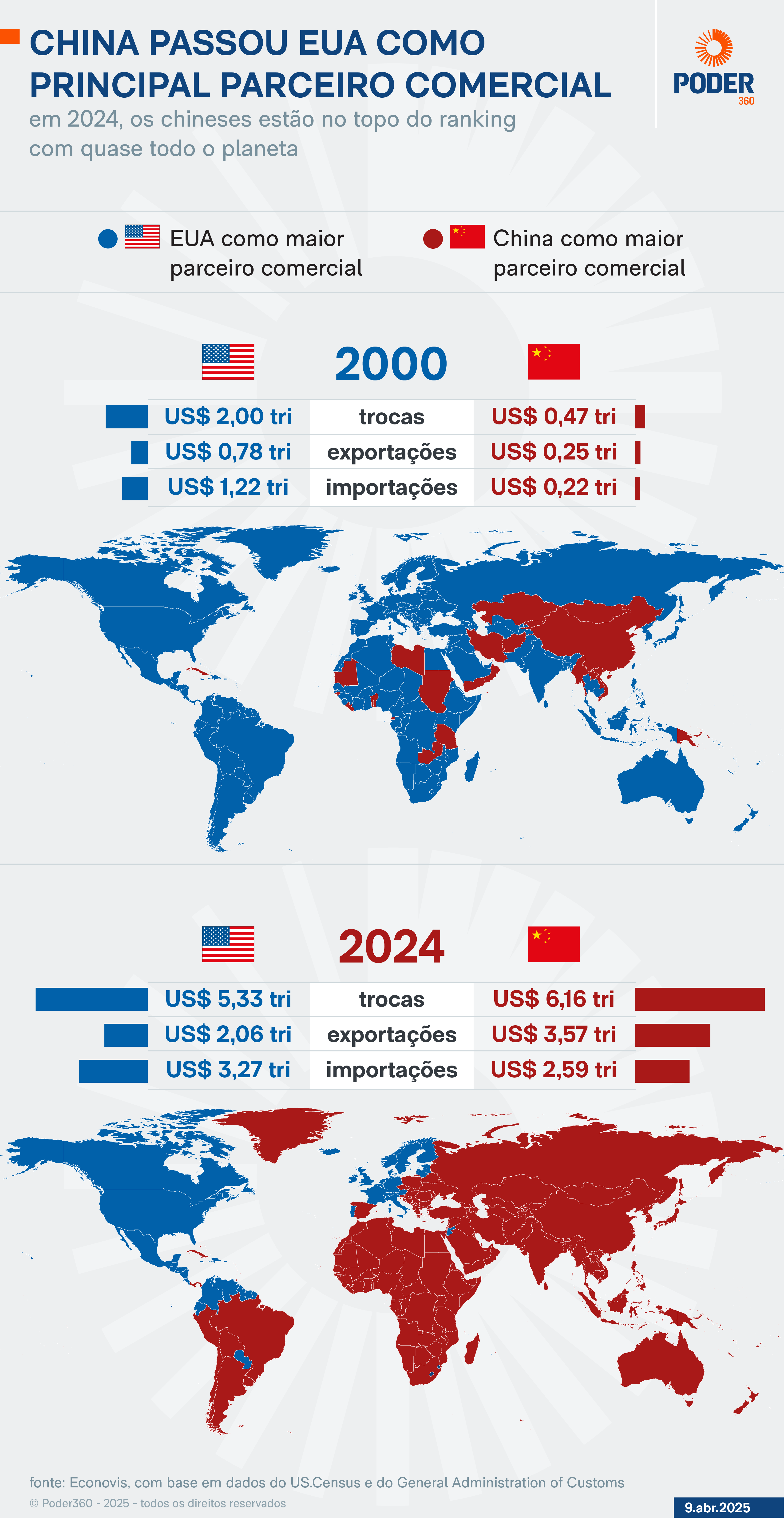 A América do Sul é um dos principais palcos da disputa comercial entre China e EUA. Desde 2024, Pequim tem ganhado terreno no continente e já é o principal parceiro comercial da região. Em 2000, Washington era o maior parceiro comercial de todos os países sul-americanos. Em 2024, o placar virou com a China conquistando o posto em 6 países, incluindo as duas maiores economias sul-americanas: Brasil e Argentina.
