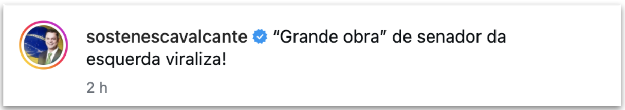 A iniciativa causou reações entre políticos de oposição. O deputado federal Sóstenes Cavalcante (PL-AL) compartilhou o vídeo da inauguração em seu perfil no Instagram na 3ª feira (10.fev.2026) com a legenda: “‘Grande obra’ de senador da esquerda viraliza!”.