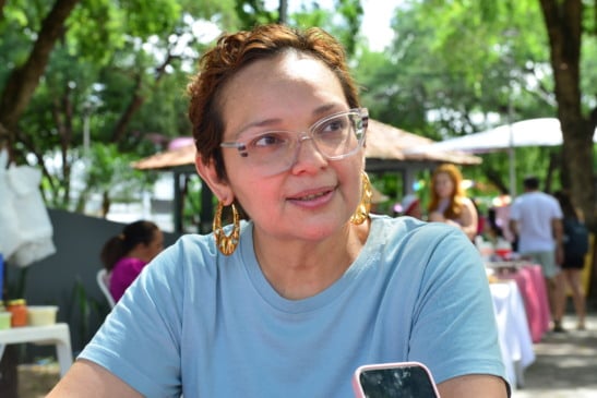 Entre os expositores também está Val Pereira, da Daval Alimentos Amazônicos. Ela participa há cinco sábados e comercializa molhos de pimenta com sabores regionais como mel, tucumã e pupunha, além de pulseiras artesanais feitas com sementes.
