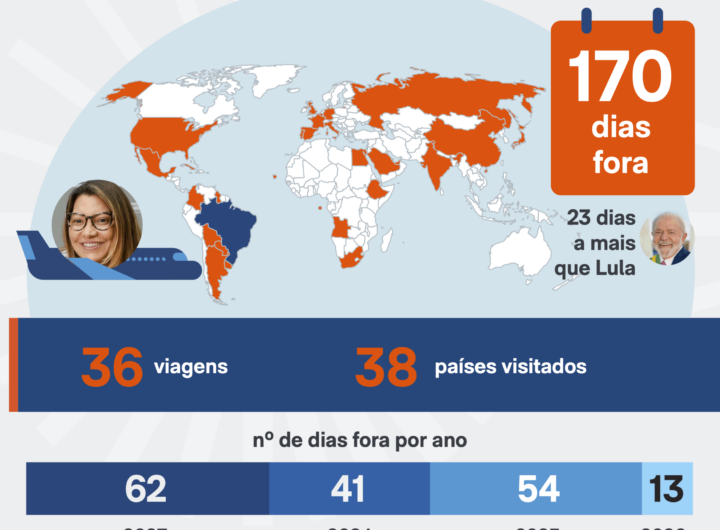 Janja soma 170 dias fora do Brasil desde 2023 3 min read Geral Janja soma 170 dias fora do Brasil desde 2023 RealRadioTvBrasil abril 5, 2026
