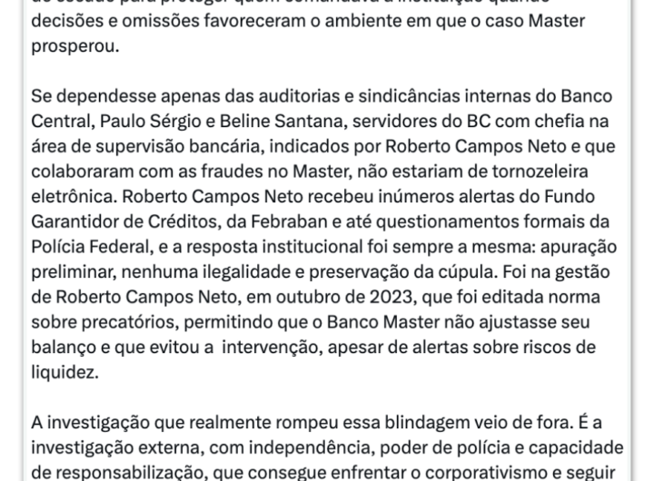 Lindbergh diz que Galípolo tentou blindar Campos Neto no caso Master 2 min read Geral Lindbergh diz que Galípolo tentou blindar Campos Neto no caso Master RealRadioTvBrasil abril 8, 2026
