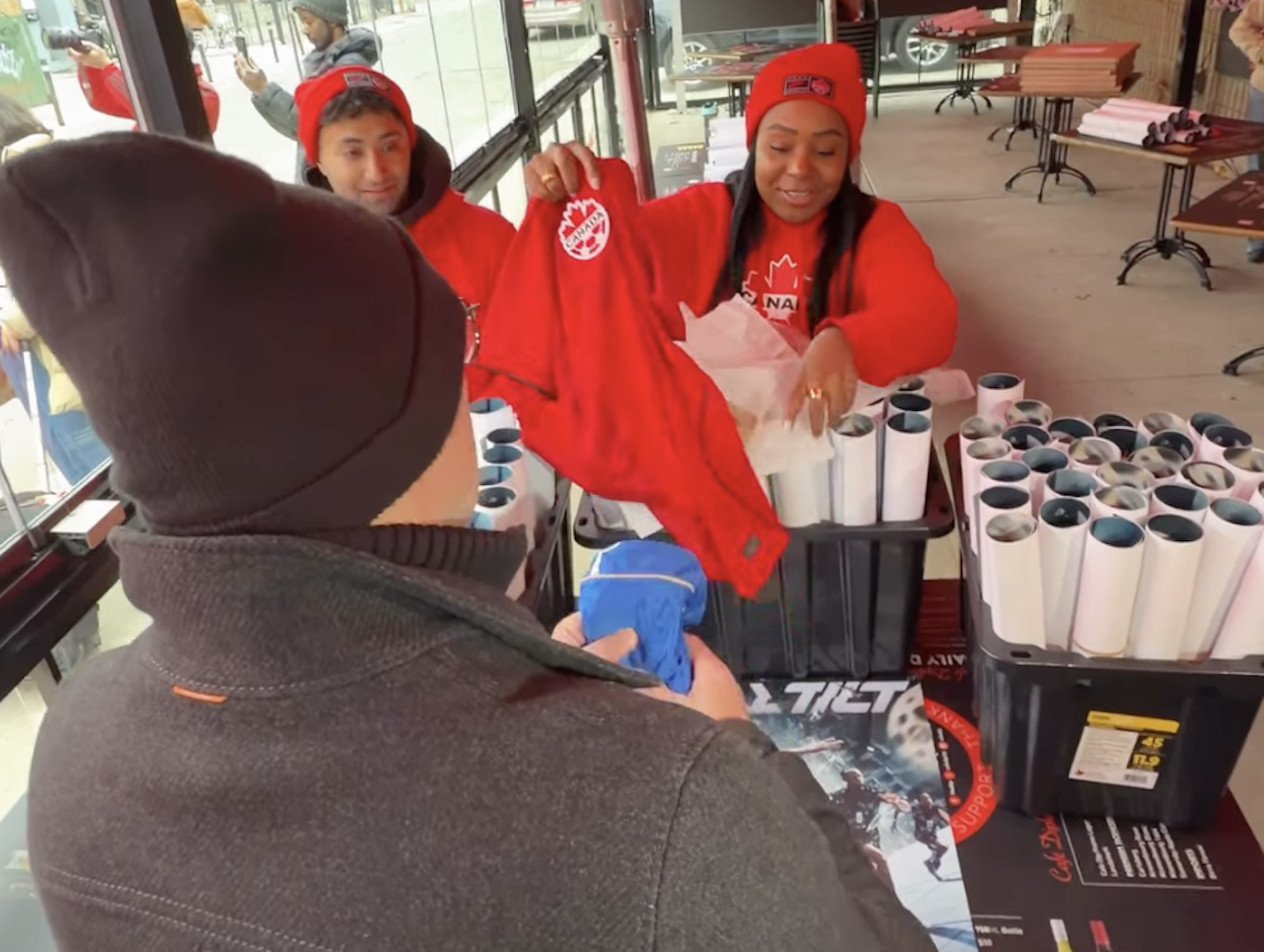 Torcedores fizeram fila na porta do restaurante para garantir uma camisa da seleção canadense