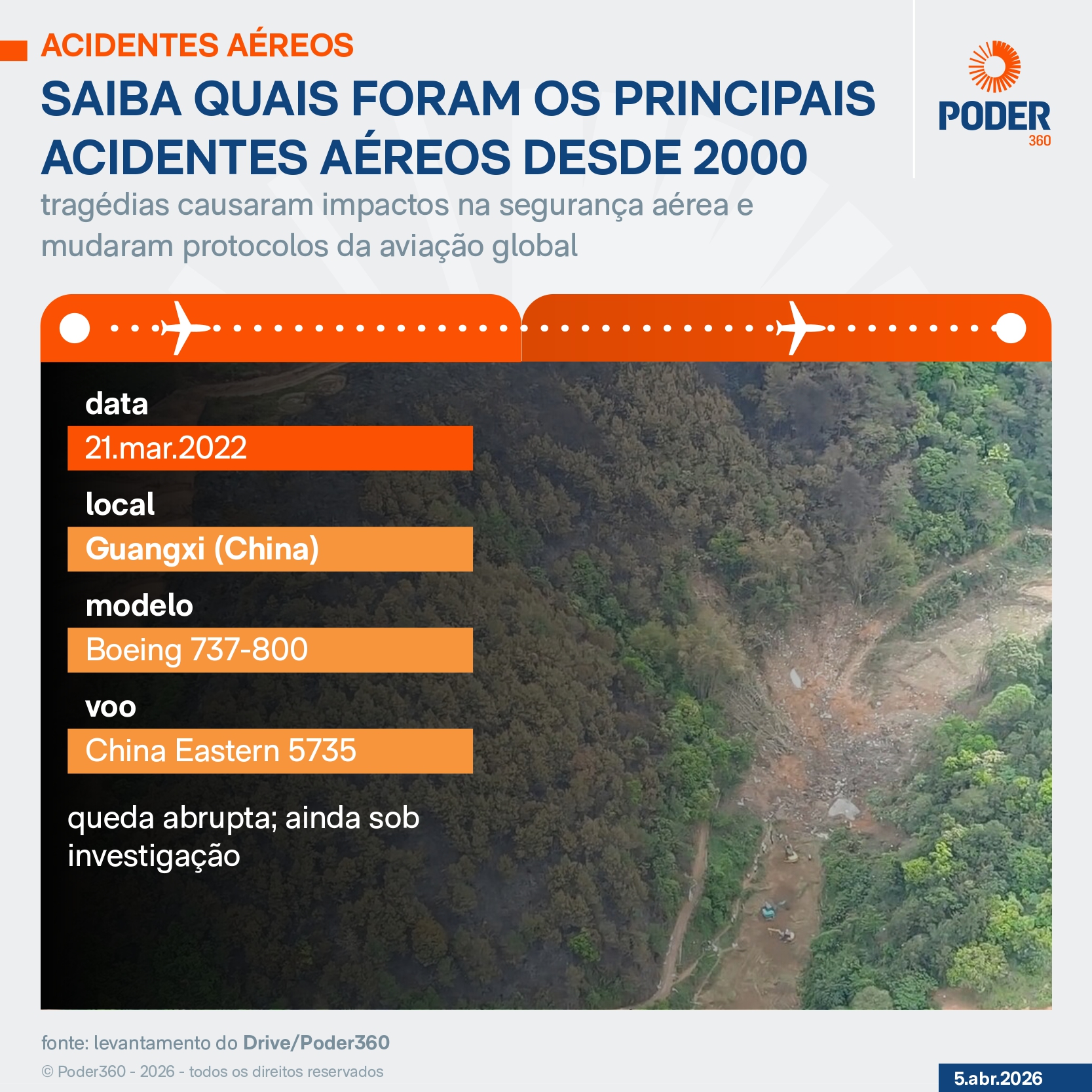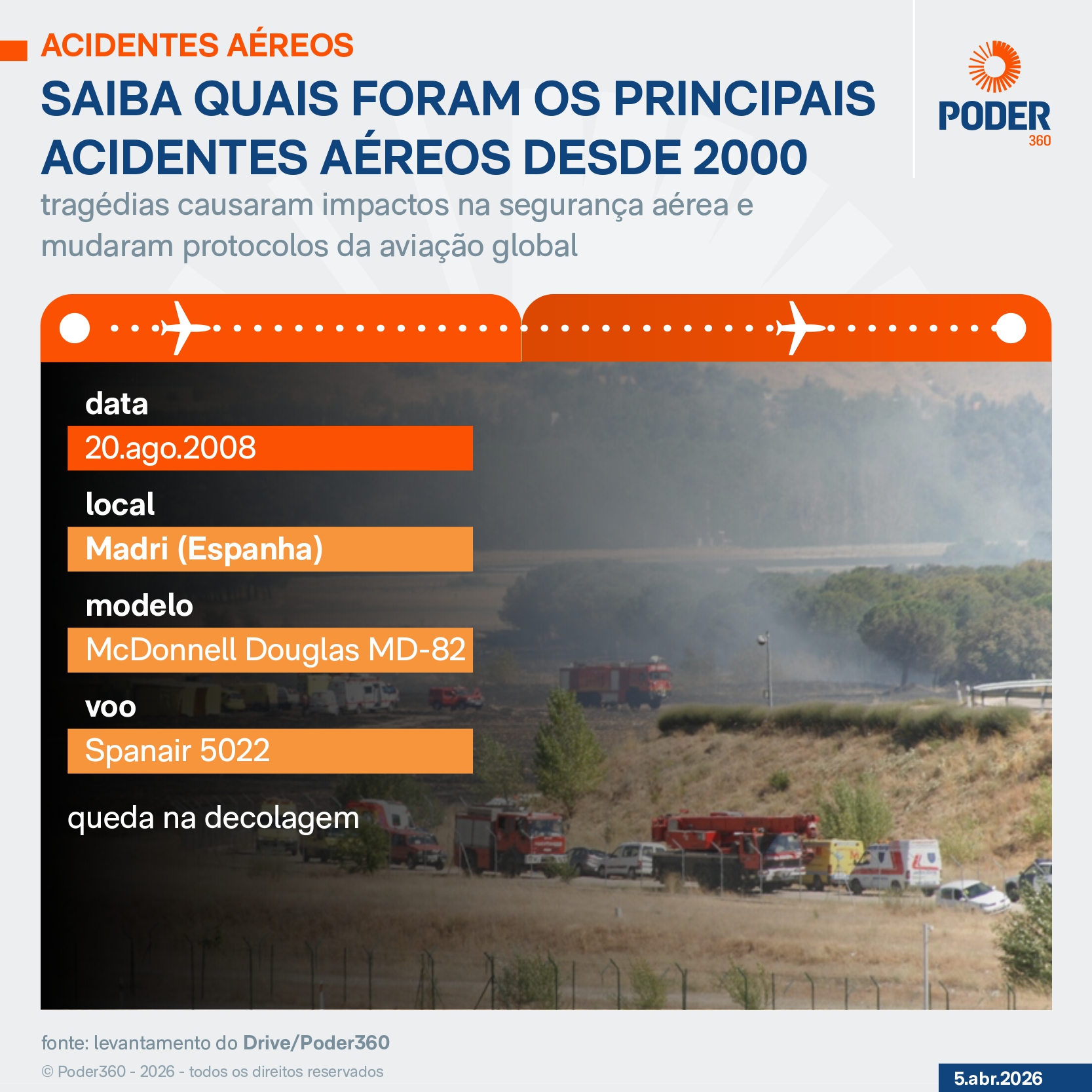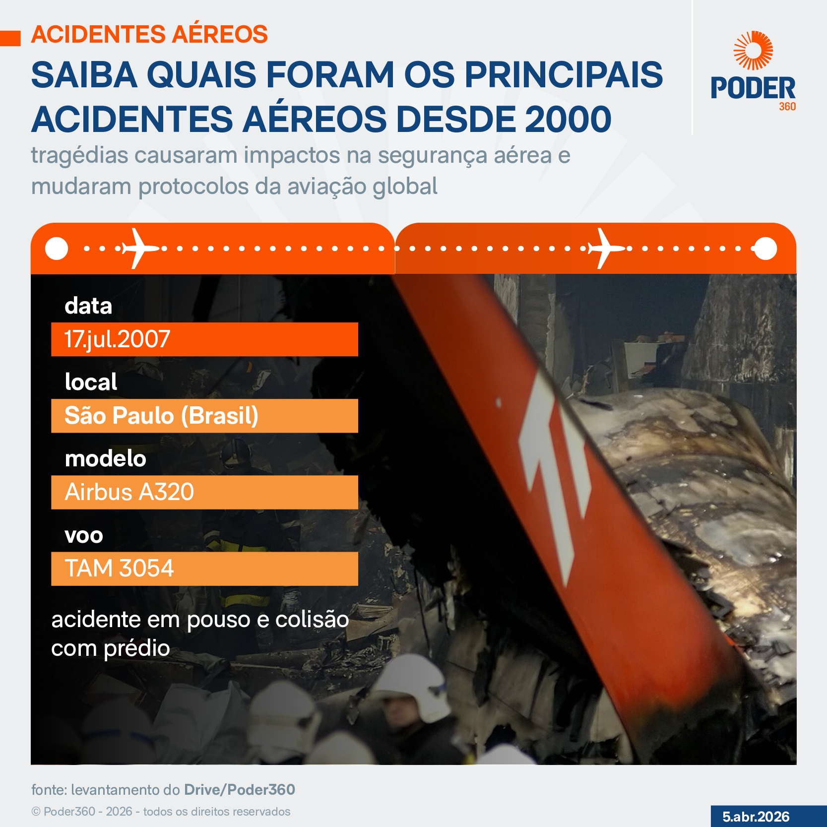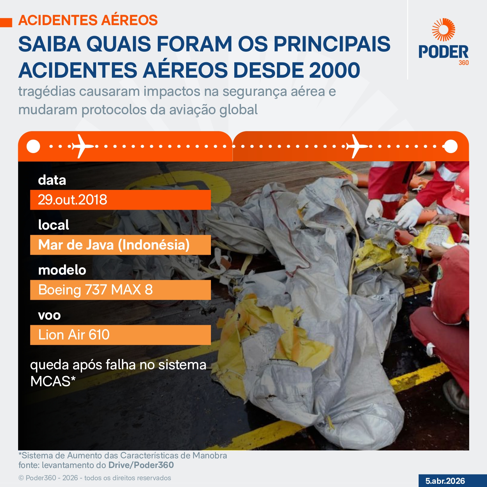Desde o ano 2000, acidentes em voos comerciais provocaram aproximadamente 10.000 mortes no mundo, segundo levantamento do Poder360 com dados da Iata (International Air Transport Association). Grandes tragédias internacionais, como o desaparecimento do voo Malaysia Airlines 370 em 2014, com 239 mortos, e o voo Air France 447 em 2009, que matou 228 pessoas sobre o Atlântico, marcam o período.