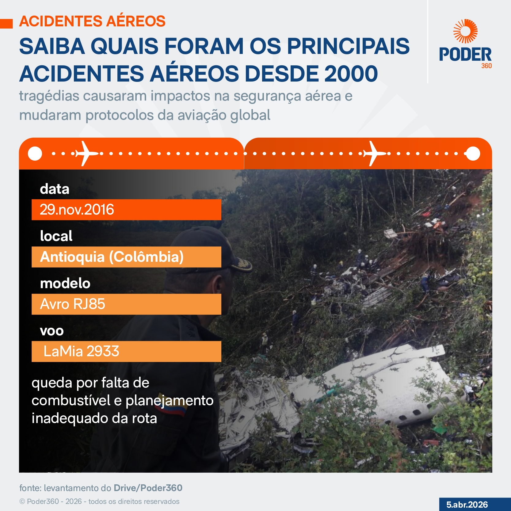Entre os brasileiros, destacam-se o TAM 3054, em 2007 –que matou 199 pessoas ao ultrapassar o final da pista de Congonhas–, e o VoePass 2283, em 2024 –que causou 62 mortes em Vinhedo, interior de São Paulo. Outro caso foi o do voo LaMia 2933, que deixou 71 mortos, sendo 19 jogadores da Chapecoense, perto de Medelín, na Colômbia, em novembro de 2016.