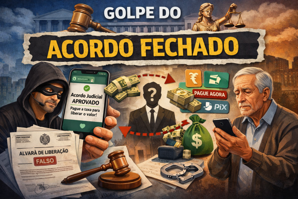 Por Redação | Especial Investigativo – 24/03/2026 – Um golpe sofisticado, silencioso e em expansão tem feito vítimas em diversas regiões do Brasil, especialmente entre aposentados, pensionistas e pessoas que aguardam decisões judiciais. Conhecido como “golpe do acordo fechado”, o esquema utiliza informações reais de processos judiciais para aplicar fraudes financeiras com aparência de total legitimidade.