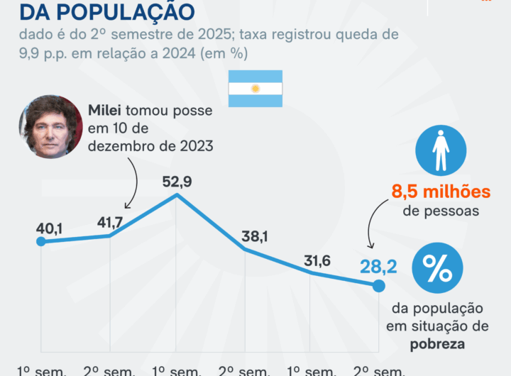 Pobreza na Argentina cai para 28,2%, menor nível sob Milei 2 min read Geral Pobreza na Argentina cai para 28,2%, menor nível sob Milei RealRadioTvBrasil abril 2, 2026