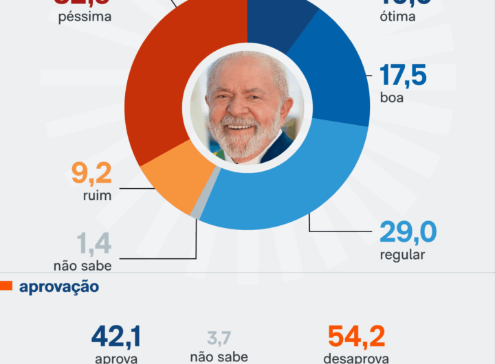Lula é aprovado por 42,1% e desaprovado por 54,2% no Amapá 2 min read Geral Lula é aprovado por 42,1% e desaprovado por 54,2% no Amapá RealRadioTvBrasil março 18, 2026